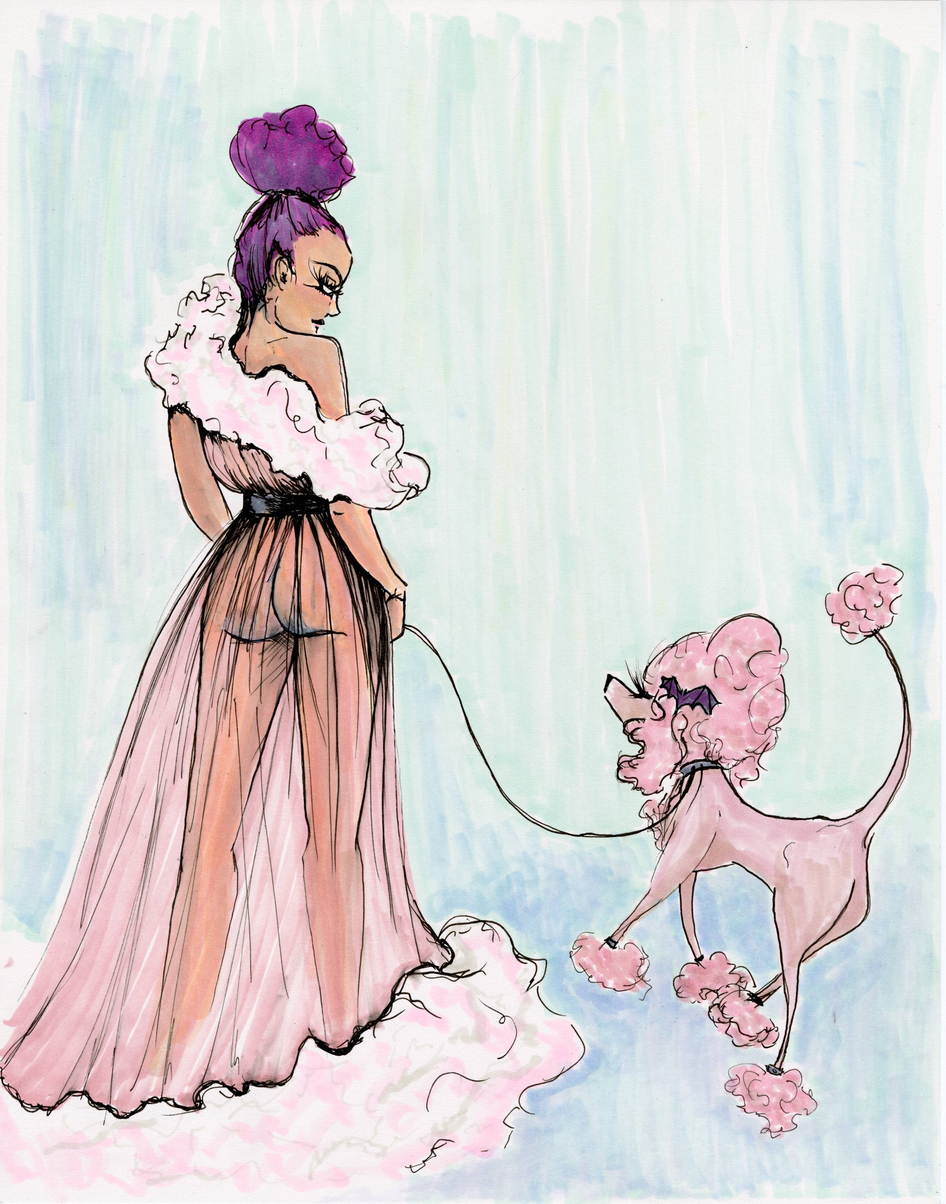 Je suis Autumn, costumière et artiste. Pincushion Pinups est une collection d'illustrations de pin-up, de points de croix, de paillettes et d'un peu d'effroi. Je suis toujours inspirée par la classique pinup girl, la culture gothique, la fantasy et le kitsch. Je suis également costumière. Ce travail m'a amené à parcourir le monde entier sur des bateaux de croisière, dans des parcs à thème et à créer des maisons hantées !