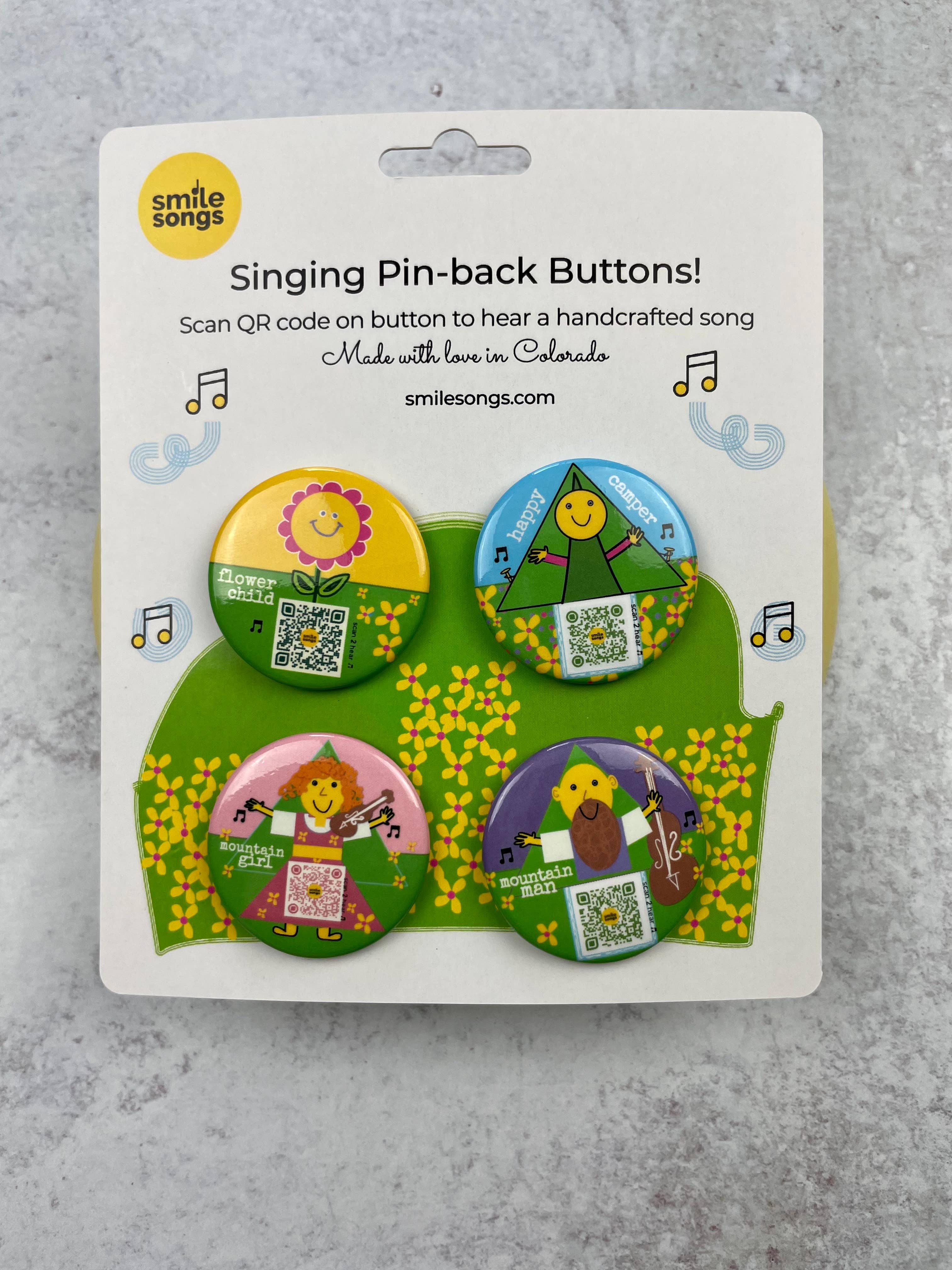 Smile Songs crée des cartes et des cadeaux alimentés par QR qui chantent des chansons artisanales délicieuses. Attendez—quoi ? C'est vrai ! Scannez le code, écoutez une chanson faite à la main. Cartes de vœux. Autocollants. Livres d'activités. Pas d'application. Juste de la vraie musique, du vrai art et du vrai cœur. Art, chansons et produits faits avec amour au Colorado, USA par une vraie femme, un être.