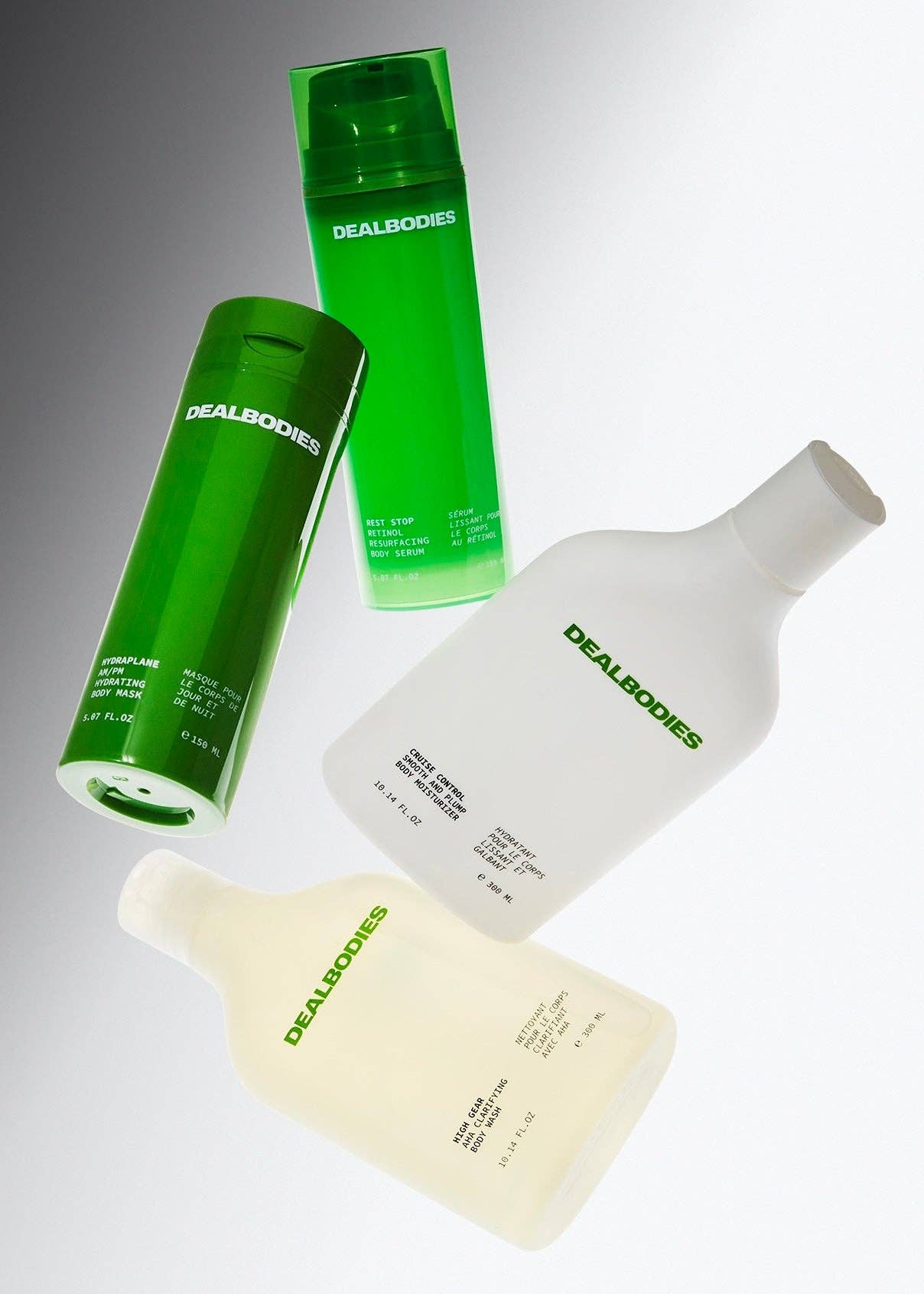 Découvrir que nos produits de soins personnels de tous les jours étaient remplis d'un réservoir d'eau à plus de 85 % a été un véritable casse-tête. Dealbodies réoriente les soins corporels de base vers des concentrés actifs propres et efficaces pour une peau active, qui ne sont pas perturbés par la dilution. Nous remplaçons les produits standard remplis d'eau par des actifs 3 fois plus concentrés et performants, qui donnent des résultats rapides et font un meilleur travail. Dealbodies est certifiée neutre en matière plastique par Repurpose Global, certifiée 1 % pour la planète, certifiée Leaping Bunny sans cruauté envers les animaux et certifiée FSC, en passe d'être climatiquement neutre.