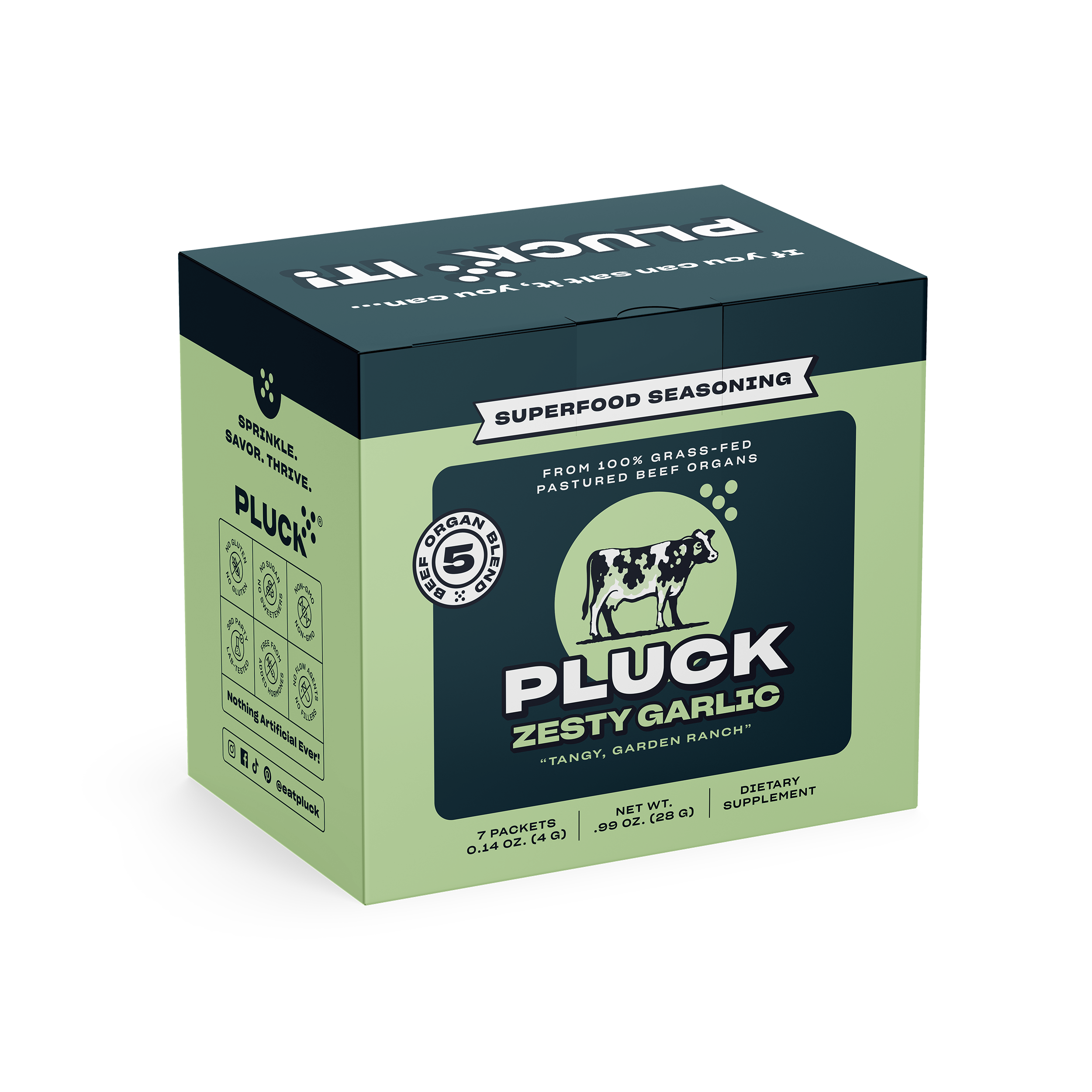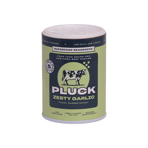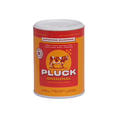 Qu'ont en commun les communautés Keto, Paléo, Carnivore, Nose-to-tail et les futures mamans ? Elles considèrent toutes les abats comme essentiels pour une bonne santé. Et, à juste titre, car les organes animaux sont parmi les aliments les plus riches en nutriments de la planète. Mais elles ont aussi un autre point commun. Elles ont du mal à intégrer réellement les abats dans leur alimentation. L'approvisionnement est trop difficile, la cuisson prend trop de temps, et le goût et la texture les ont tenues à l'écart... jusqu'à maintenant. Le tout premier assaisonnement à base d'abats, Pluck, est la façon la plus délicieuse, nutritive et facile de profiter de tous les bienfaits des abats ! Tous les assaisonnements Pluck sont fabriqués frais — la date indiquée sur chaque emballage est la date de fabrication, et non la date d'expiration. Pure a une durée de conservation allant jusqu'à 2 ans, tandis que Zesty Garlic, All Purpose et Mild Spicy se conservent jusqu'à 1 an à partir de cette date.