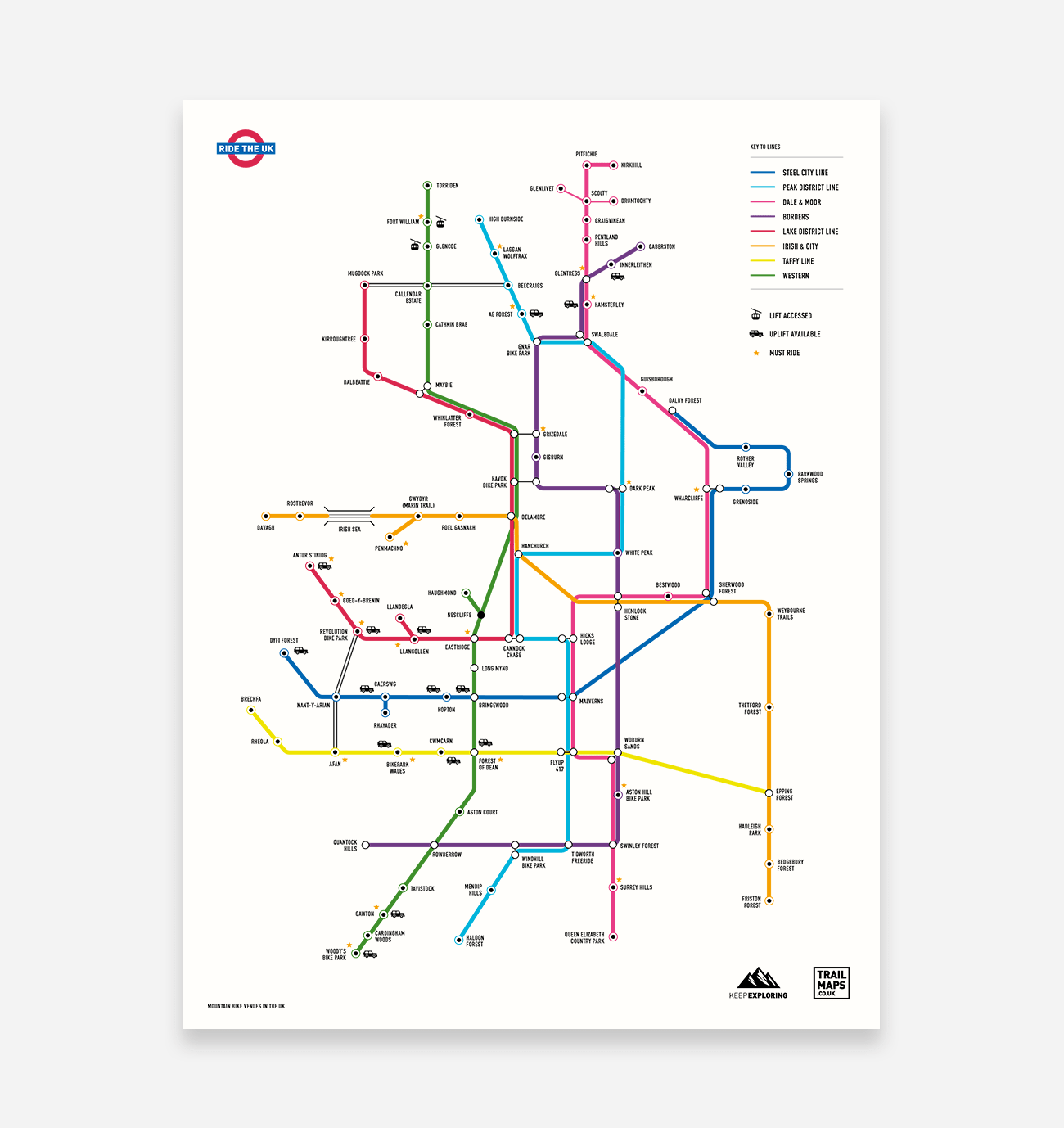 L'histoire de TrailMaps Avec plus de 200 designs dans la collection TrailMaps, des imprimés de qualité ornent les maisons des vététistes et des amateurs de plein air du monde entier. Le concept est né en 2009 en tant que projet universitaire créé par le fondateur et graphiste Aaron Tolley. Après avoir obtenu son diplôme pour poursuivre une carrière dans le design graphique, Aaron a dû attendre quelques années avant de découvrir son design TrailMap original, ce qui a donné naissance à une idée qui est devenue la marque TrailMaps en 2017. Basé dans le Staffordshire, à proximité des pistes de VTT de Cannock Chase, Aaron et sa femme Helen gèrent TrailMaps en tant qu'empire familial. Fort d'une solide expérience en vélo de route et en vélo de montagne, ce duo passionné de plein air gère efficacement l'entreprise avec deux enfants. Fort du succès d'une marque en pleine croissance, Aaron et Helen ont décidé de quitter leur carrière respective et d'investir à plein temps dans TrailMaps en 2020.
