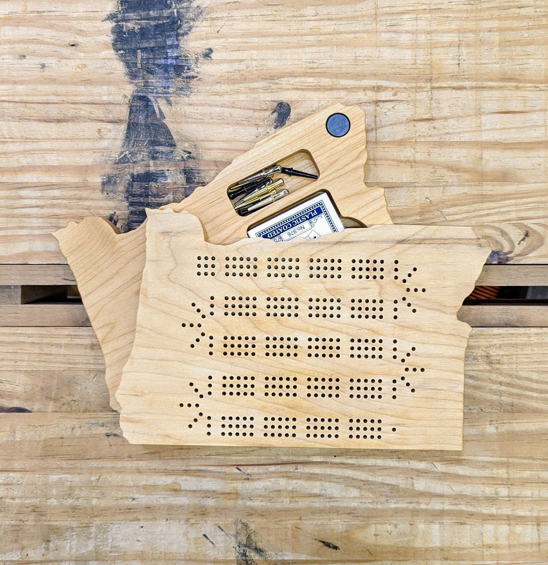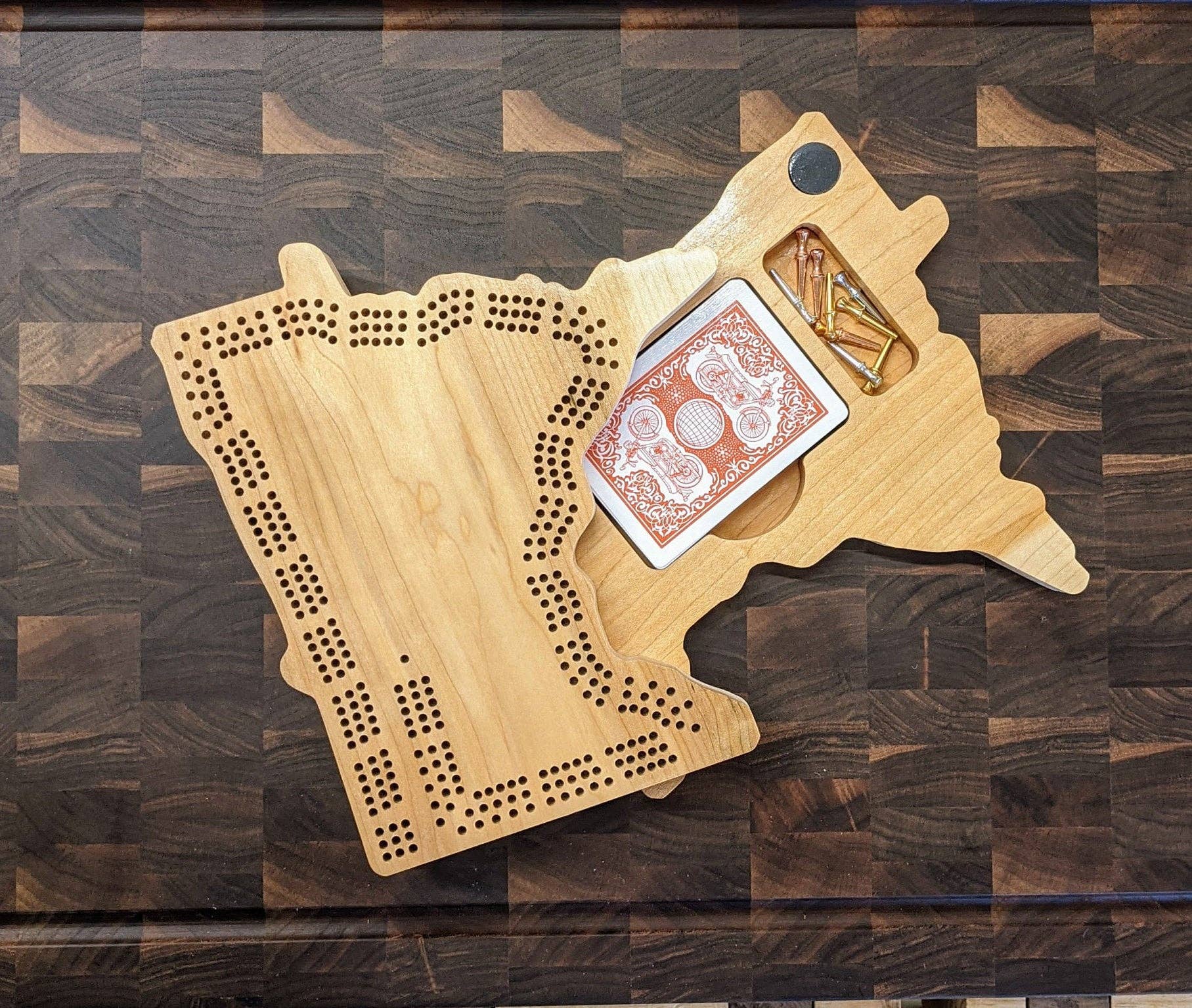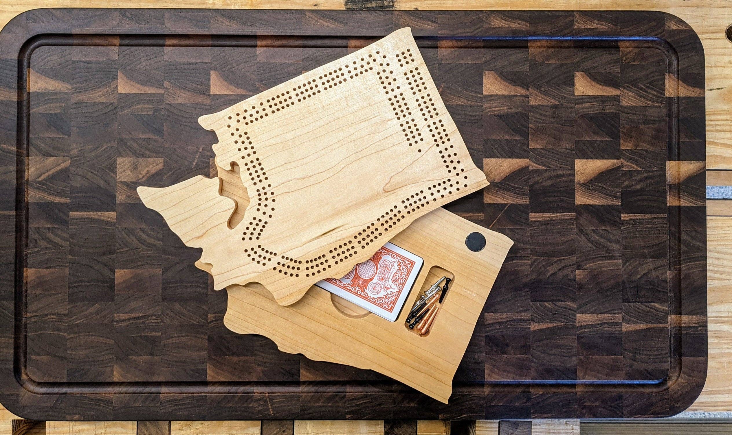 Bonjour ! Je suis Ben, un menuisier de Milwaukee, dans le Wisconsin, qui a passé le début de ma carrière de menuisier à restaurer des outils vintage et à construire des meubles de style Arts and Crafts pour la maison. Ces derniers temps, je me suis concentrée sur les planches de cribbage sur le thème de l'État, qui sont apparues lorsque ma tante a vu une planche que j'avais fabriquée et m'a demandé de fabriquer quelques autres États. Le reste appartenait à l'histoire et quelques milliers de planches plus tard, je les ai vendues à de grandes et de petites entreprises du monde entier.