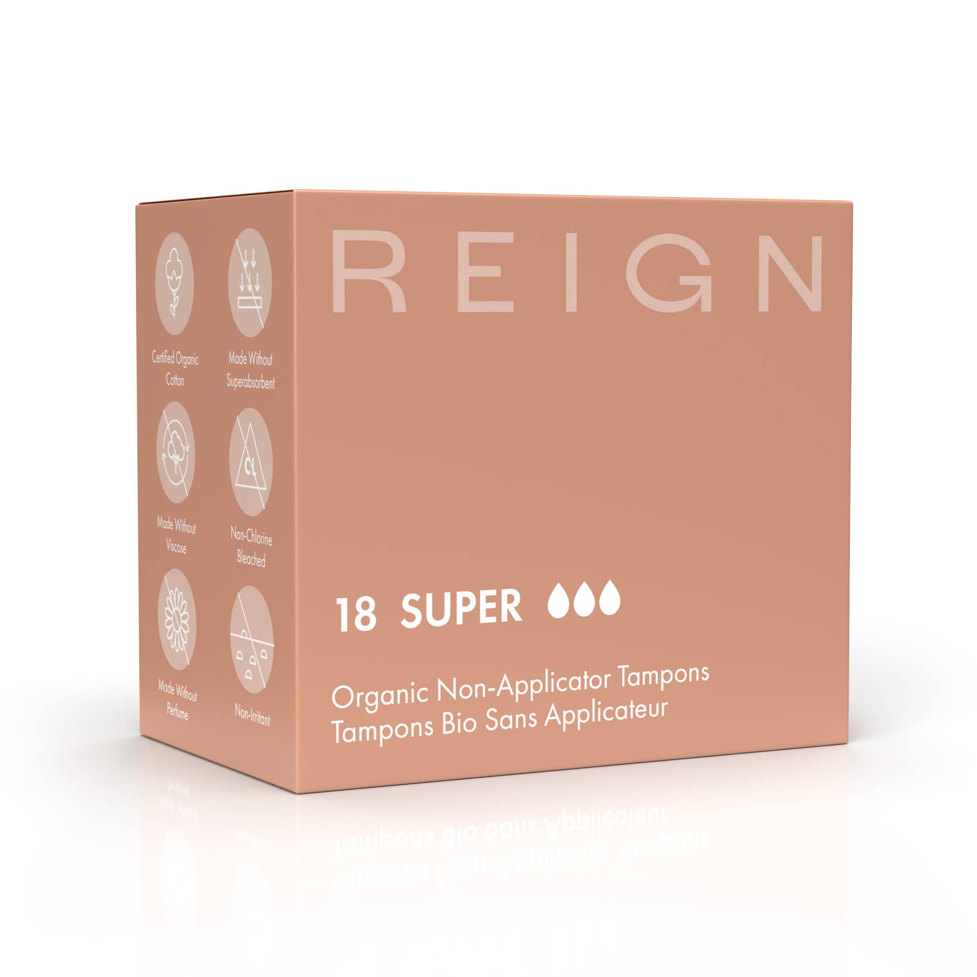 Reign a été fondée sur le principe de rendre accessibles des produits menstruels issus de sources responsables, durables et ayant un impact positif. Nous sommes profondément attachés à des produits qui sont bons pour l'utilisateur, qui complètent l'esthétique de l'environnement quotidien et des produits de nos utilisateurs et qui ont un impact environnemental positif. Pour soutenir cet engagement, nous avons établi un partenariat avec Oceanworks pour éliminer une livre de déchets plastiques de l'environnement pour chaque boîte vendue. Nous pensons que les marques doivent représenter bien plus que leurs produits et avoir la responsabilité de poursuivre un objectif plus ambitieux.