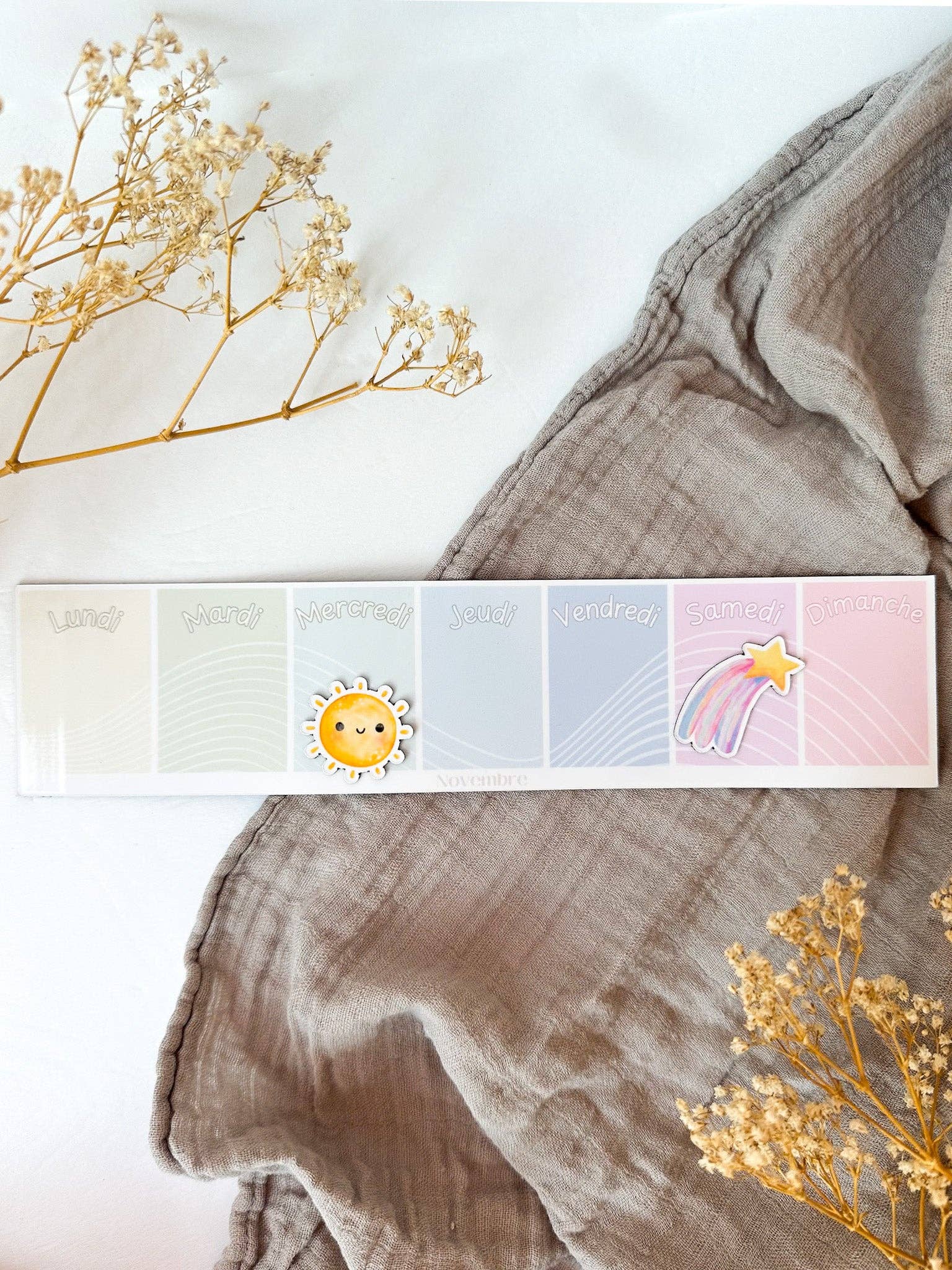 Chez Novembre Boutique, nous croyons qu’un bel outil donne envie de s’organiser. Portée par une esthétique épurée et des matériaux soignés, la marque a grandi autour d’une même promesse: Élégance, Clarté et Qualité. Nos produits se déclinent en trois univers qui se complètent: la papeterie, avec des supports élégants et pratiques pour écrire et planifier; l’organisation familiale, avec des outils faciles d’usage qui rendent les routines plus fluides; et la maison, avec de petites pièces utiles qui apportent de l’ordre et une touche de douceur au quotidien. Notre esthétique se veut douce, faite de lignes pures et de couleurs apaisantes. Chaque page est pensée pour être intuitive, avec une mise en page aérée qui rend la lecture plus fluide. Nous sélectionnons un papier épais, agréable sous la main, et des composants de première qualité, puis nous soignons chaque détail de finition. Nos produits sont conçus et fabriqués dans notre atelier au Québec. Notre fabrication artisanale locale garantit un contrôle attentif et met en valeur le savoir-faire d’ici. Fondée en 2022 par Carolane, le nom de Novembre Boutique est inspiré de la naissance de son fils, transformant ce mois souvent perçu comme sombre en symbole de renouveau. En 2024, Laure rejoint l’aventure, puis rachète la boutique en 2025 pour poursuivre son développement. Comme un signe, la fille de Laure est elle aussi née en Novembre, qui relie désormais l’histoire de la fondatrice et celle de la nouvelle propriétaire.
