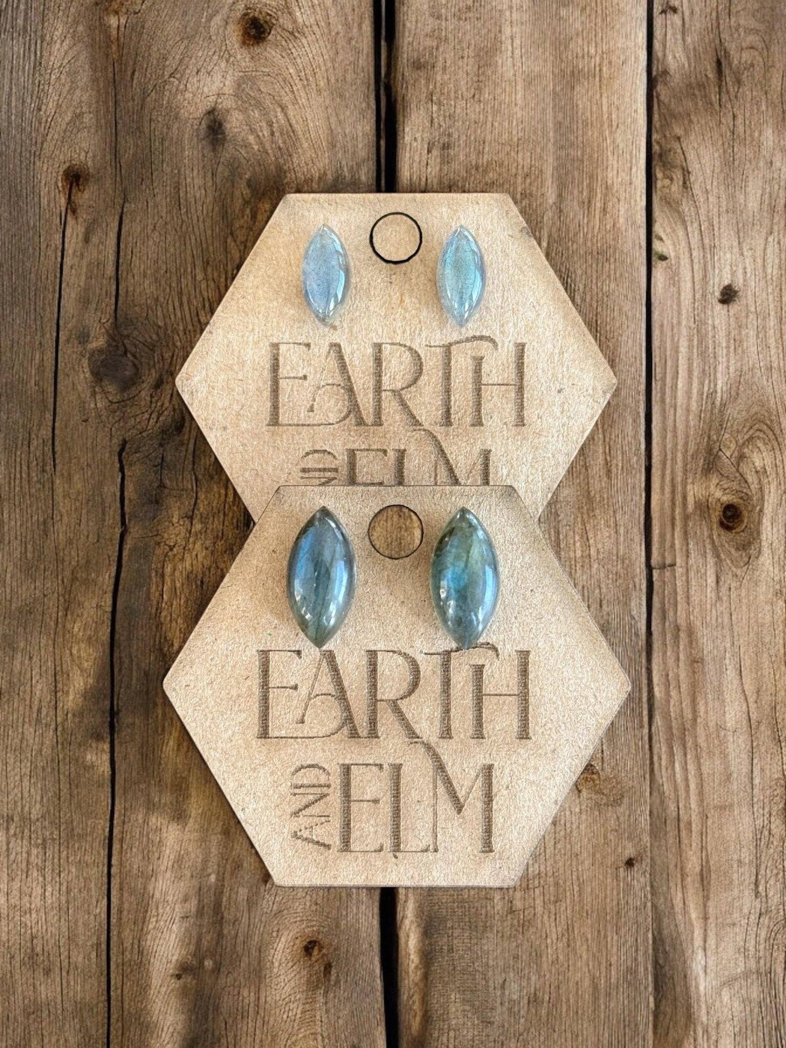 Earth & Elm a commencé comme un projet passion alors que j'étais une nouvelle mère à la maison en congé de maternité. Cela m'a permis de rester à la maison avec mes filles. Chaque paire de boucles d'oreilles est fabriquée à la main sur ma propriété en Alberta centrale, au Canada. Toutes mes pierres sont sculptées par un jeune homme et son frère qui vivent en Inde. L'argent soutient les frères et leurs parents. Mes clous d'oreilles sont fabriqués en acier chirurgical hypoallergénique pour les sensibilités métalliques. Ils sont fixés avec de la résine UV et sont garantis à vie.