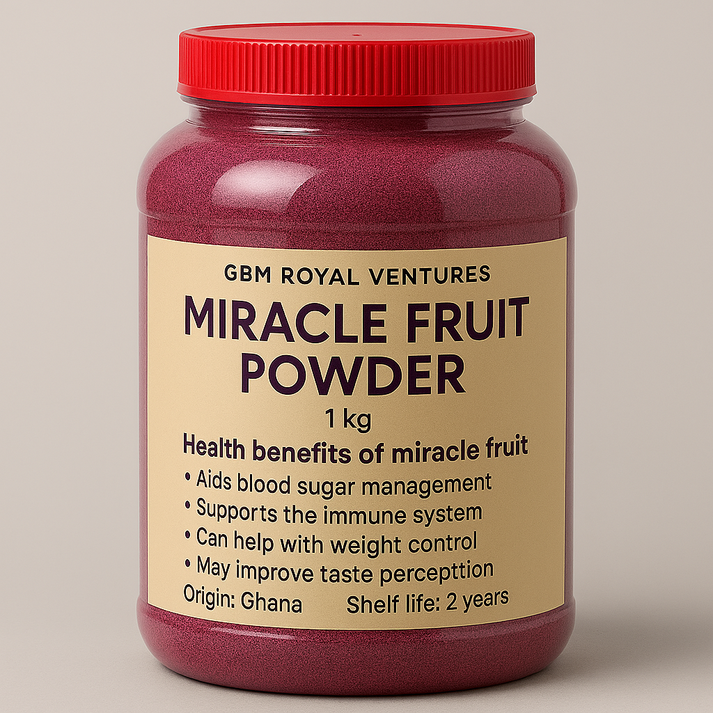 La qualité n'a pas besoin d'être synonyme de prix élevé. Nous nous engageons à offrir des prix abordables qui garantissent l'accès à des produits sains pour tous, sans sacrifier l'excellence. Nos arrangements d'expédition simplifiés garantissent une livraison rapide et fiable, assurant que la fraîcheur, de la ferme à la table, arrive efficacement à votre porte—que vous soyez au coin de la rue ou à l'autre bout du monde. Avec GBM ROYAL VENTURES, vous n'achetez pas seulement des produits agroalimentaires—vous adoptez un engagement envers la pureté, la valeur et un service rapide en lequel vous pouvez avoir confiance. La crédibilité et la satisfaction du client sont notre marque de fabrique. Activités principales • Commerce international de produits agroalimentaires ghanéens de qualité supérieure • Développement de produits et branding pour les nutraceutiques de niche • Approvisionnement stratégique et logistique d'exportation (CIF/FOB/CNF) • Développement de partenariats à travers l'Afrique, l'Europe et l'Asie Forces stratégiques • Expertise en benchmarking des prix mondiaux et logistique commerciale • Branding fort et design d'emballage pour l'attrait du commerce de détail • Accords commerciaux transparents et juridiquement solides • Engagement envers le patrimoine ghanéen et la qualité biologique • Engagement envers la livraison de biens et services de bonne qualité à travers nos représentants commerciaux dans pratiquement toutes les principales régions productrices ...
