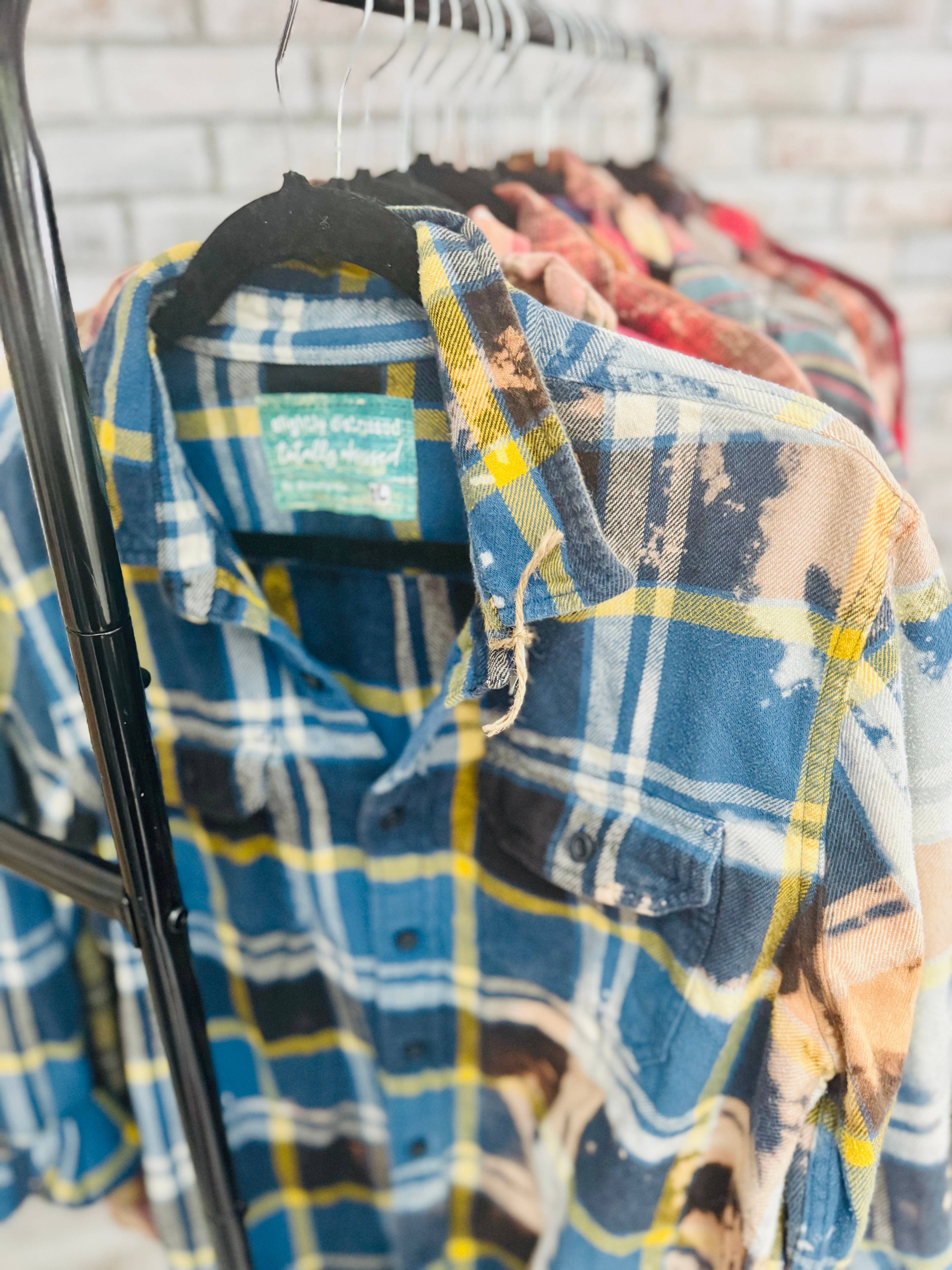 Tout a commencé au lycée lorsque je piquais les chemises en flanelle trop grandes de mon père dans son placard pour les porter à l'école, et ma chose préférée était d'aller faire du shopping dans les friperies avec ma mère. Mélangez ces deux éléments et, 23 ans plus tard, Slightly Distressed Totally Obsessed est né. J'ai été propriétaire d'une boutique de détail pendant 20 ans. Je connais les défis auxquels sont confrontés les commerçants, mon produit est fabriqué à la main avec amour, en tenant compte du prix et de la qualité vendable. Vous allez adorer nos flanelles usées ! C'est une promesse ! Notre marque recycle de vieilles flanelles qui finiraient normalement à la décharge, ce qui la rend écologique.