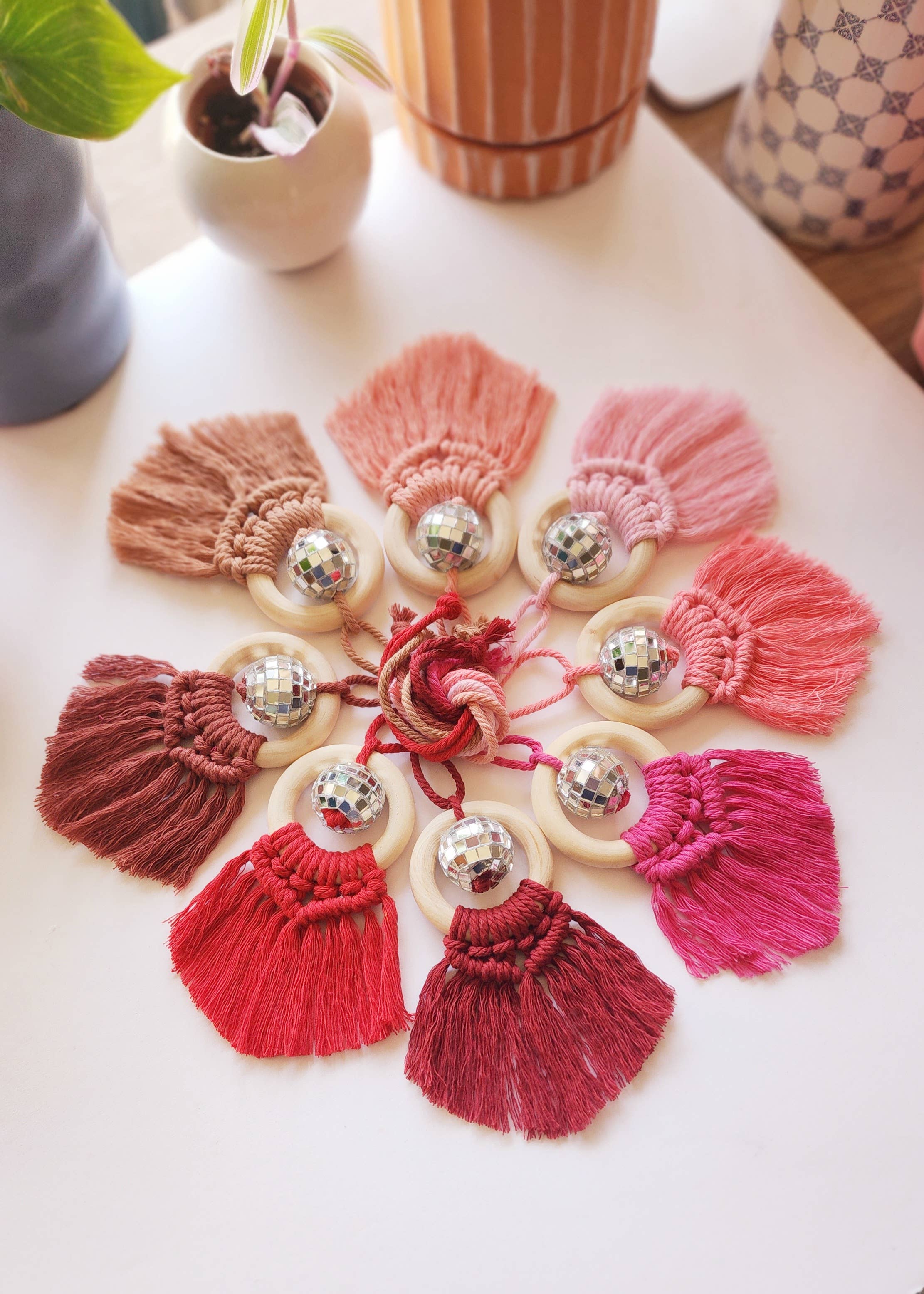 Bienvenue dans notre boutique ! Trio mère-fille possédé ! Mes filles et moi travaillons ensemble pour créer des porte-clés, des bijoux, des décorations et des accessoires en macramé uniques et tendance. Nous mettons tout notre cœur et toute notre âme dans chaque pièce que nous fabriquons. J'espère que vous trouverez quelque chose de beau dans notre boutique. Merci pour votre soutien et n'hésitez pas à nous demander des commandes personnalisées. ***REMARQUE*** Nous aimons rendre nos clients heureux et leur offrir la meilleure expérience d'achat possible. Envoyez-nous un message pour toute question concernant votre commande et nous trouverons une solution. Merci !