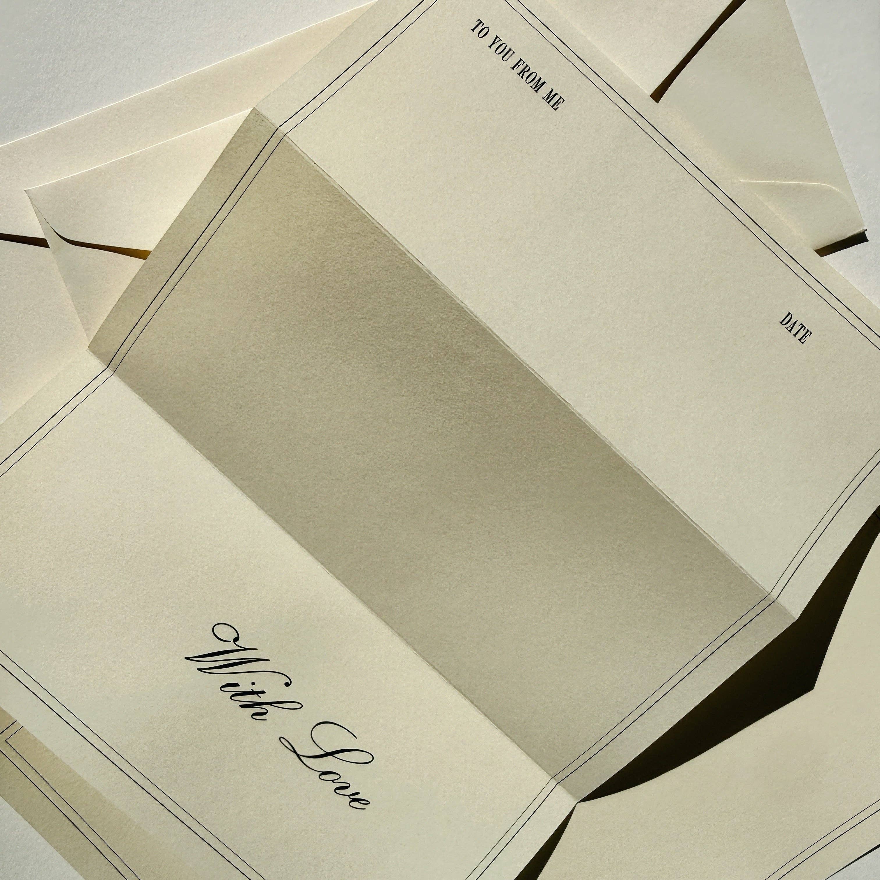 Jaymes Paper est une boutique de papeterie basée à Santa Barbara, en Californie, qui propose une collection de cartes de vœux subtilement sophistiquées pour toutes les occasions. Fondée par Jaymee Harney en 2019, l'entreprise est née d'une profonde fascination pour tout ce qui concerne le papier et le design. Au fil des ans, elle a collecté des éphémères en papier provenant de divers lieux, fêtes et voyages et fabrique des cartes faites maison pour sa famille et ses amis depuis 1997. Elle rêvait depuis longtemps de créer une collection de papeterie au design minimaliste mettant en valeur des tons neutres et des caractères simples. Dans un monde numérique de communication instantanée, nous adorons le fait que les cartes nous encouragent à nous asseoir et à écrire des sentiments significatifs à ceux que nous aimons. Nous travaillons avec divers imprimeurs familiaux situés principalement à Los Angeles et à Santa Barbara. Nos cartes typographiques sont imprimées sur un moulin à vent de Heidelberg, une ancienne presse qui existe depuis le début des années 1900. Nous sommes fascinés par l'art démodé de la gravure et adorons utiliser cette technique intemporelle dans le cadre de notre processus.