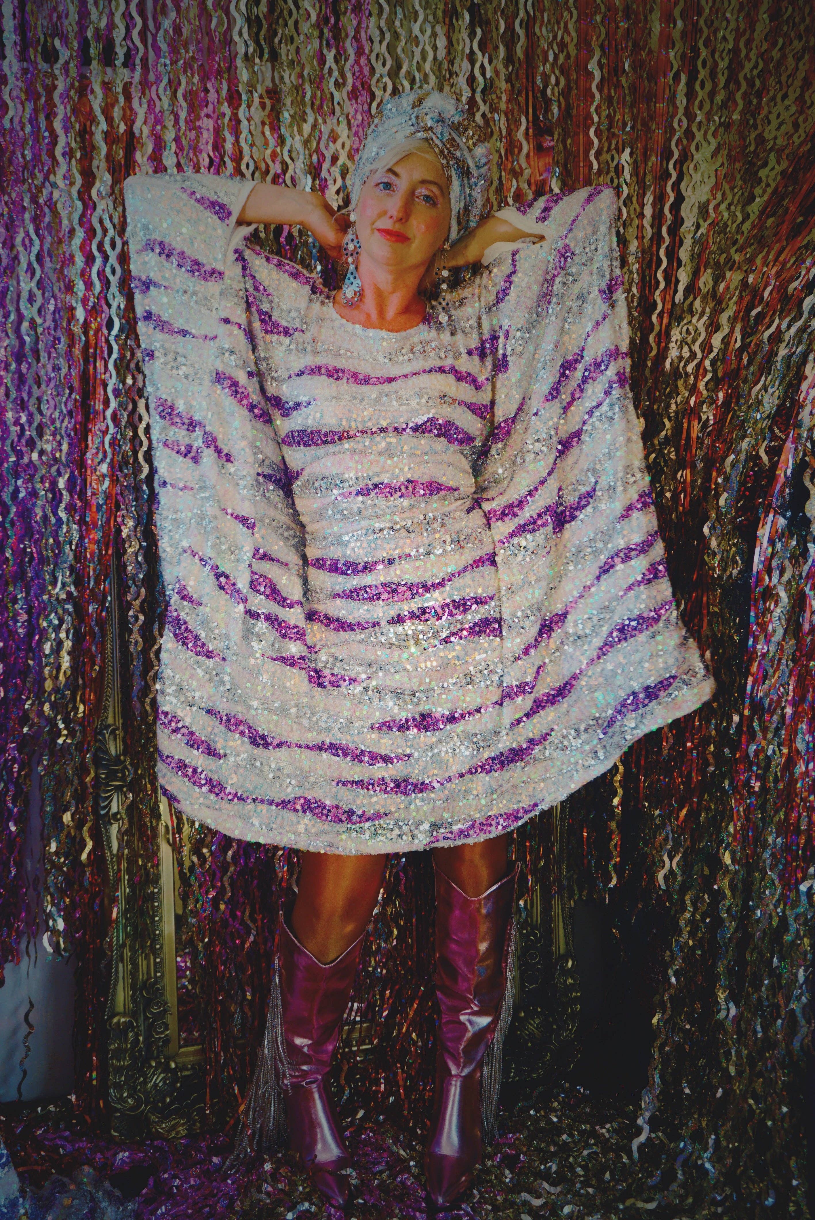 Jodie, alias Fumbalinas, avec l'aide de son équipe merveilleuse de freelances, conçoit et crée des couvre-chefs, accessoires, robes et caftans uniques, indisciplinés mais sophistiqués pour toutes les formes, tailles et occasions. Des turbans en PVC métallisé haute couture, des coiffes uniques infusées d'origami et de fleurs aux caftans en marabout ornés de sequins - tous sont faits pour attirer l'attention. Fumbalinas a été fondée en 2012 en raison du manque de couvre-chefs uniques et faits à la main disponibles sur le marché. Ayant commencé par créer des coiffes sur mesure qui seraient portées pour son travail dans le monde du spectacle, Jodie a découvert qu'elle avait un talent naturel, une passion et un flair pour cet art, et a donc commencé à travailler de manière plus professionnelle et à en faire une entreprise. Depuis, l'entreprise s'est développée pour inclure une ligne de vêtements - une large gamme de robes et caftans inclusifs en taille - fabriqués à partir du propre patron sur mesure de Jodie et contenant nos "rubans cachés" signature qui sont magiquement conçus pour mettre en valeur toutes les silhouettes.