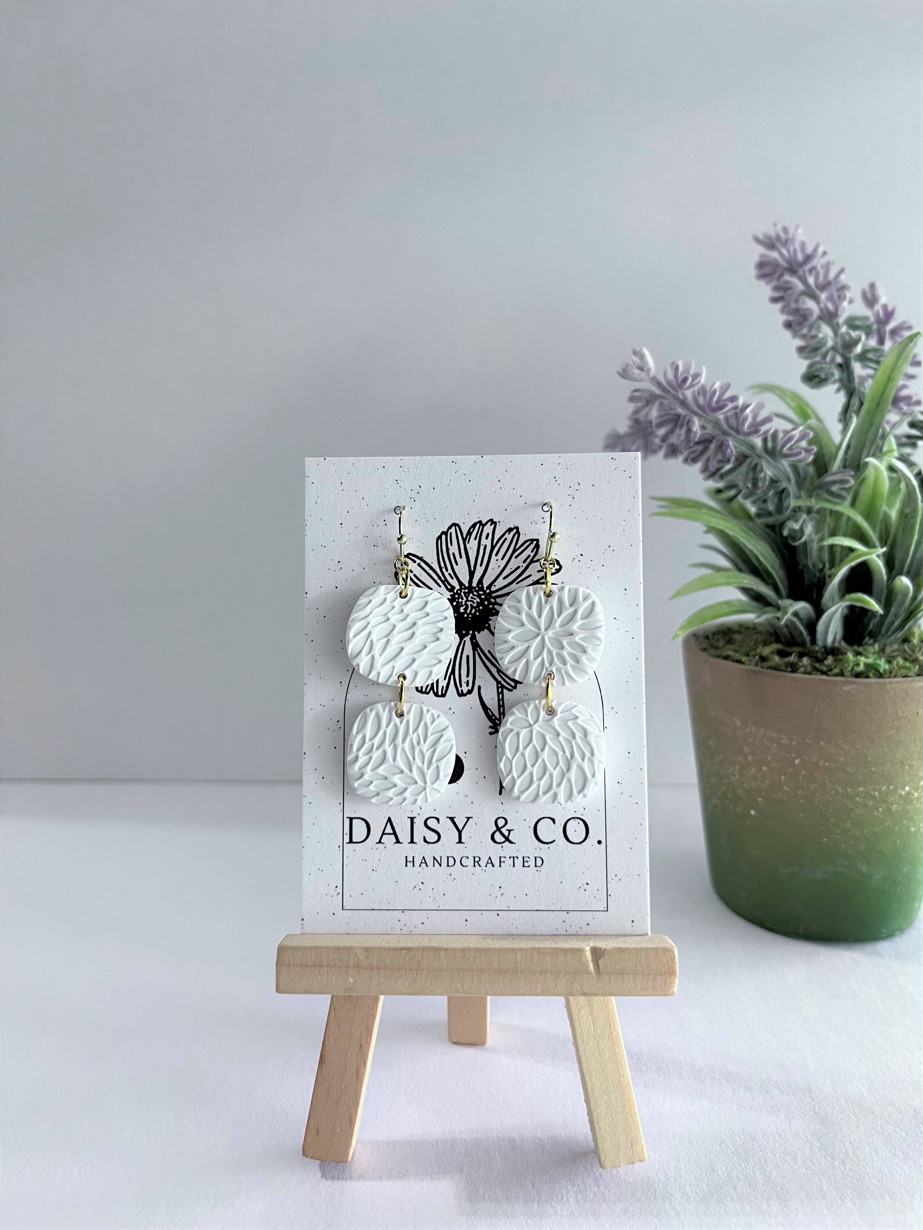 Hé ! Nous sommes Daisy & Co., un duo mère-fille qui prépare certaines des boucles d'oreilles les plus mignonnes du sud du Texas. Nous adorons travailler avec de la pâte polymère pour créer certaines des boucles d'oreilles les plus fabuleuses dans lesquelles nous savons que vous aurez fière allure. Ce qui est passé d'un passe-temps à une petite entreprise est quelque chose que nous n'aurions jamais imaginé. C'est donc très simple, nous adorons être créatifs et partager cela avec le monde entier ! Cette balade va être amusante, et nous sommes très heureux que vous soyez parmi nous. Vous pouvez suivre Daisy & Co. sur Facebook et Instagram pour suivre les dernières créations et les journées de lancement des boucles d'oreilles @the .realdaisycompany.