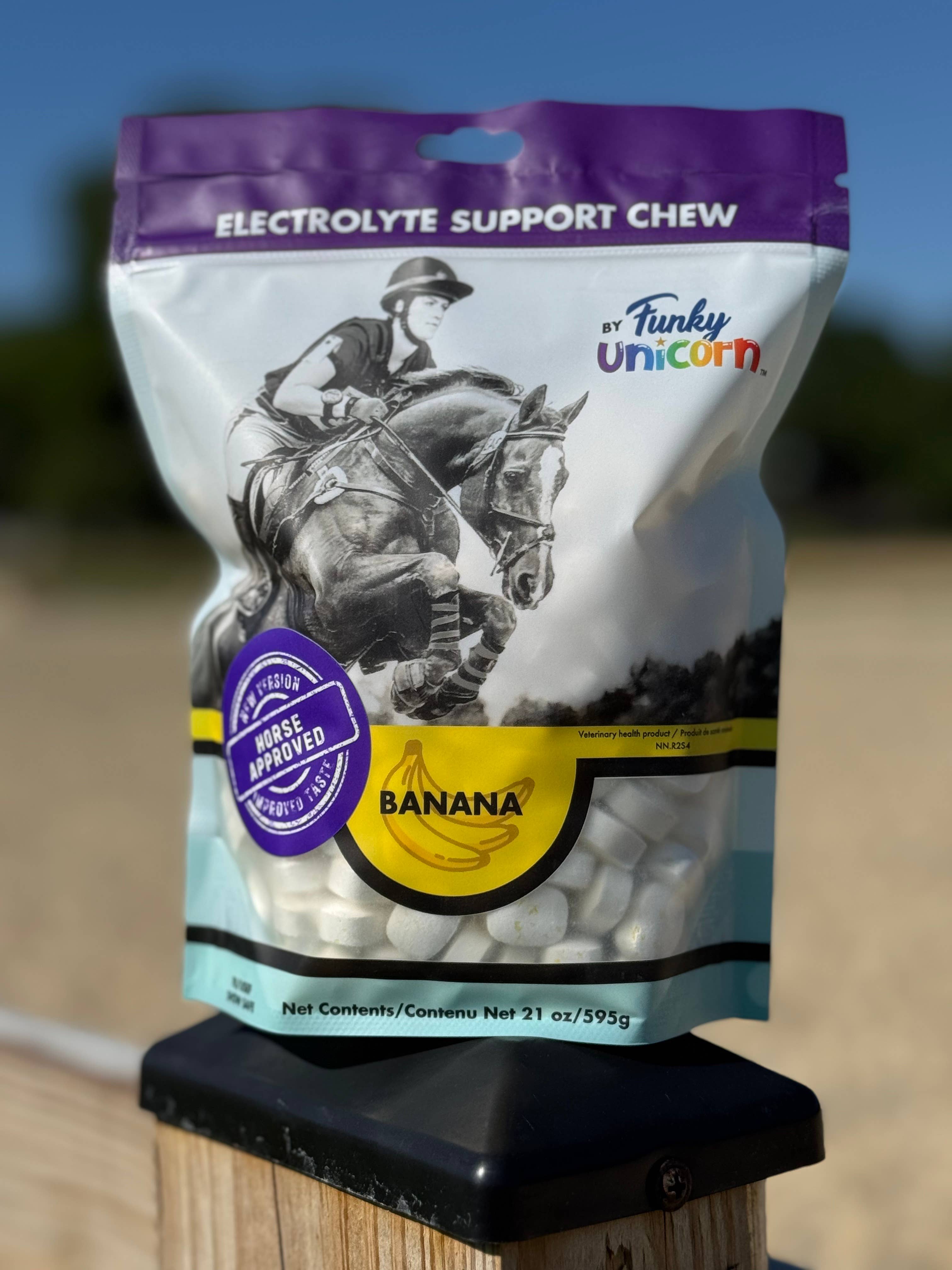 Nos cubes d'électrolyte Funky Unicorn sont conçus pour les amateurs de chevaux, par Horse Lovers ! Nous voulions profiter davantage de nos friandises traditionnelles pour chevaux. Pendant la COVID, l'approvisionnement en morceaux de sucre est devenu rare et nous avons décidé de créer une friandise qui était non seulement aimée par nos chevaux, mais qui avait également un but. Notre formule exclusive en instance de brevet incorpore des électrolytes en petites quantités dans une friandise établie de morceaux de sucre dans le but de favoriser l'hydratation. Les cubes d'électrolyte Funky Unicorn sont faciles à donner à votre cheval, n'importe quand, n'importe où ! Les cubes d'électrolyte Funky Unicorn sont des « friandises pour chevaux avec un but précis » et contiennent une très petite quantité d'électrolytes basiques. L'objectif des cubes d'électrolyte Funky Unicorn est d'aider à stimuler la soif de votre cheval pour maintenir l'hydratation et aider à la récupération. Moments potentiels pour utiliser les cubes d'électrolyte Funky Unicorn : Buveurs d'eau difficiles Cliniques et manèges d'exercice intense Spectacles et compétitions hippiques Après le remorquage La nuit, vérifier les changements de température