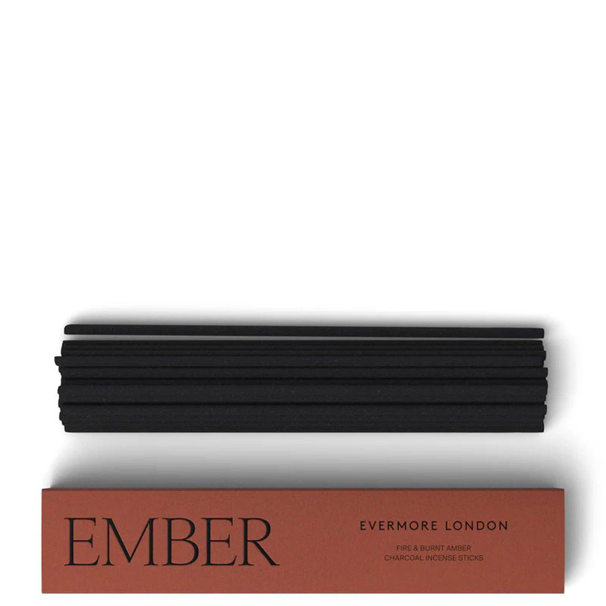 Bienvenue dans le monde d'Evermore London. Fièrement fabriqué en Angleterre. Nos produits sont fabriqués de manière responsable en utilisant des ingrédients locaux et des emballages durables. Inspirée par une curiosité éternelle et un respect pour le monde naturel, chaque bougie et encens est habilement conçu en utilisant de la cire de soja végétalienne ou du charbon sans fumée pour l'encens. Enfermées dans un pot en verre noir recyclable et réutilisable, nos bougies sont une addition exquise à votre maison. Le support d'encens en porcelaine d'argile est raffiné et discret.