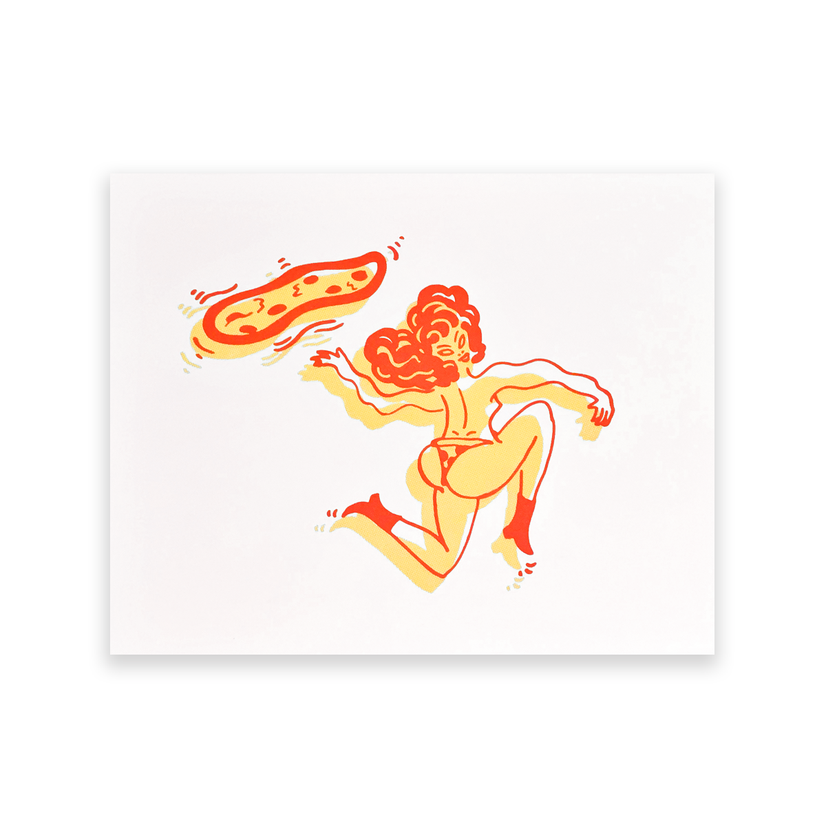 Bienvenue au Club ! Je suis Rae Matagora, illustratrice, designer et artiste à l'origine du Matagora Club. Je sérigraphie toutes mes œuvres à l'aide d'encres à base d'eau, une option plus écologique que les encres plastisol. Mon style dynamique et ludique offre une évasion colorée du quotidien, mêlant des formes audacieuses à une délicieuse absurdité dans chaque pièce. Éclectique, étrange et merveilleux !