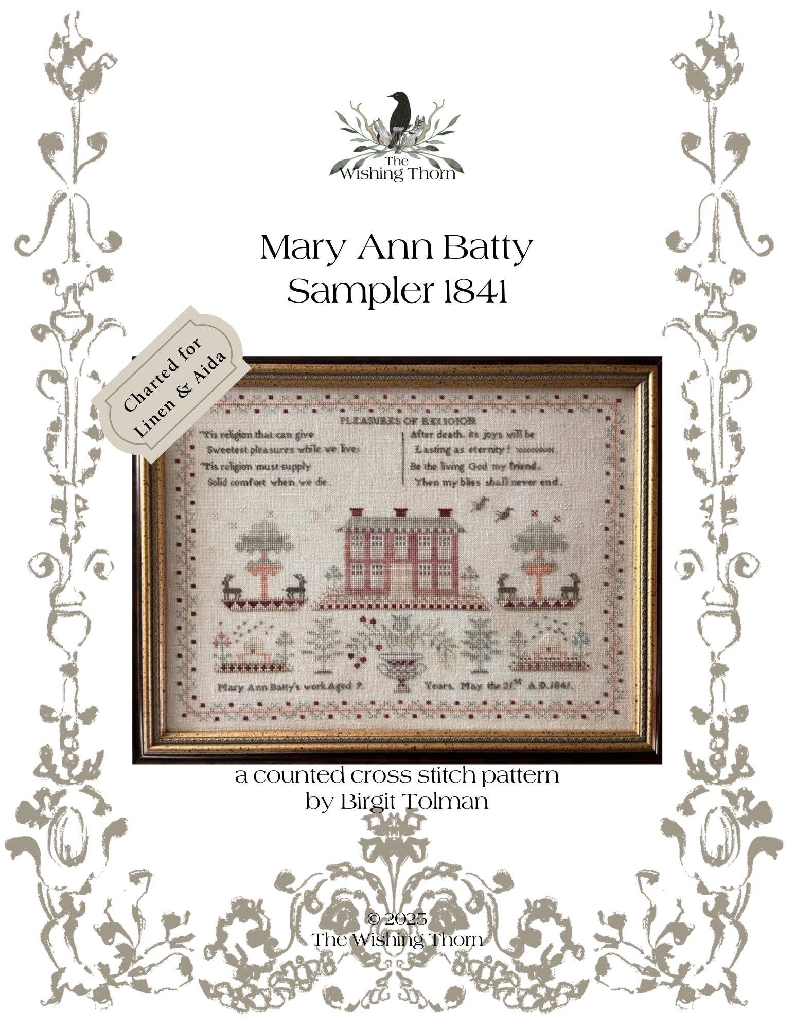 Pourquoi je fais ce que je fais Ces samplers offrent aux spectateurs contemporains un aperçu rare du passé. Ils racontent l'histoire de leur vie. Leur vie quotidienne, leurs sujets d'importance et leurs croyances. Si vous souhaitez découvrir leur passé, vous pouvez consulter le blog pour découvrir certaines des histoires complètes en ce moment. C'est un honneur de vous présenter les travaux d'aiguille et les histoires de ces jeunes filles pour les broder. Voir un beau sampler comme celui de Jane (à gauche) brodé très probablement très jeune, en si mauvais état me brise le cœur. L'amour et le temps nécessaires pour le broder, aujourd'hui presque détruits. Je suis très reconnaissante à mes ancêtres qui m'ont lancée dans cette voie avec le sampleur de mon arrière grand-mère (Olga Spindler, vous la trouverez dans la section des échantillons). Tous les samplers de ma collection sont comme mes « filles » : elles sont adorées. Savoir que vous partagez le même amour pour eux apporte une telle joie ! Je ne peux pas compter ma journée complète Jusqu'à ce que l'aiguille, le fil et le tissu se rencontrent. Passez une journée magnifique Birgit