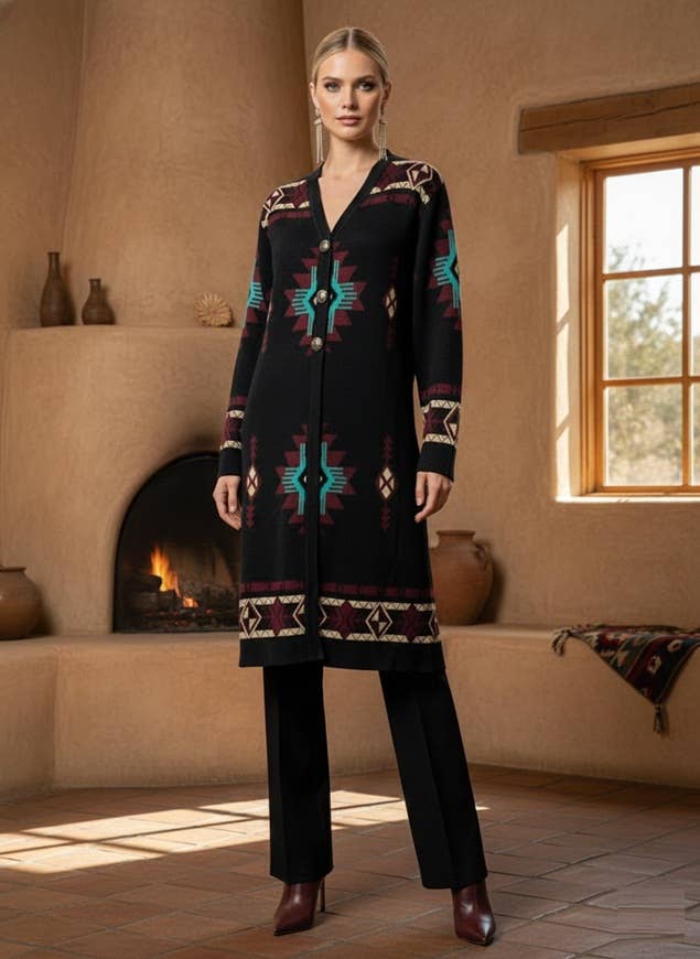 Time of the West est né d'une profonde admiration pour les paysages, l'art et l'âme du sud-ouest américain. Les vastes déserts, les maisons en adobe et les motifs tribaux intemporels racontent des histoires de résilience, de beauté et de liberté, et nous voulions porter ces histoires dans la mode moderne. Inspirés par cet héritage, nous créons des pulls qui honorent le style emblématique du sud-ouest tout en le réimaginant pour aujourd'hui. Chaque pièce mélange des motifs géométriques audacieux, des tons terreux et des détails tirés de l'art de la région, transformant la tradition en une déclaration portable. Nos pulls sont fabriqués à partir de laine synthétique de haute qualité—conçus pour être doux, chauds et durables, tout en restant fidèles à notre engagement envers l'accessibilité et le confort. Ils sont conçus pour ceux qui aiment la romance de l'Ouest : les couchers de soleil, les murs en adobe, l'esprit d'aventure et l'horizon sans fin. Time of the West est plus qu'un vêtement, c'est une connexion à l'héritage, une célébration de l'art et un rappel que le style intemporel trouve toujours son chemin vers l'avenir.