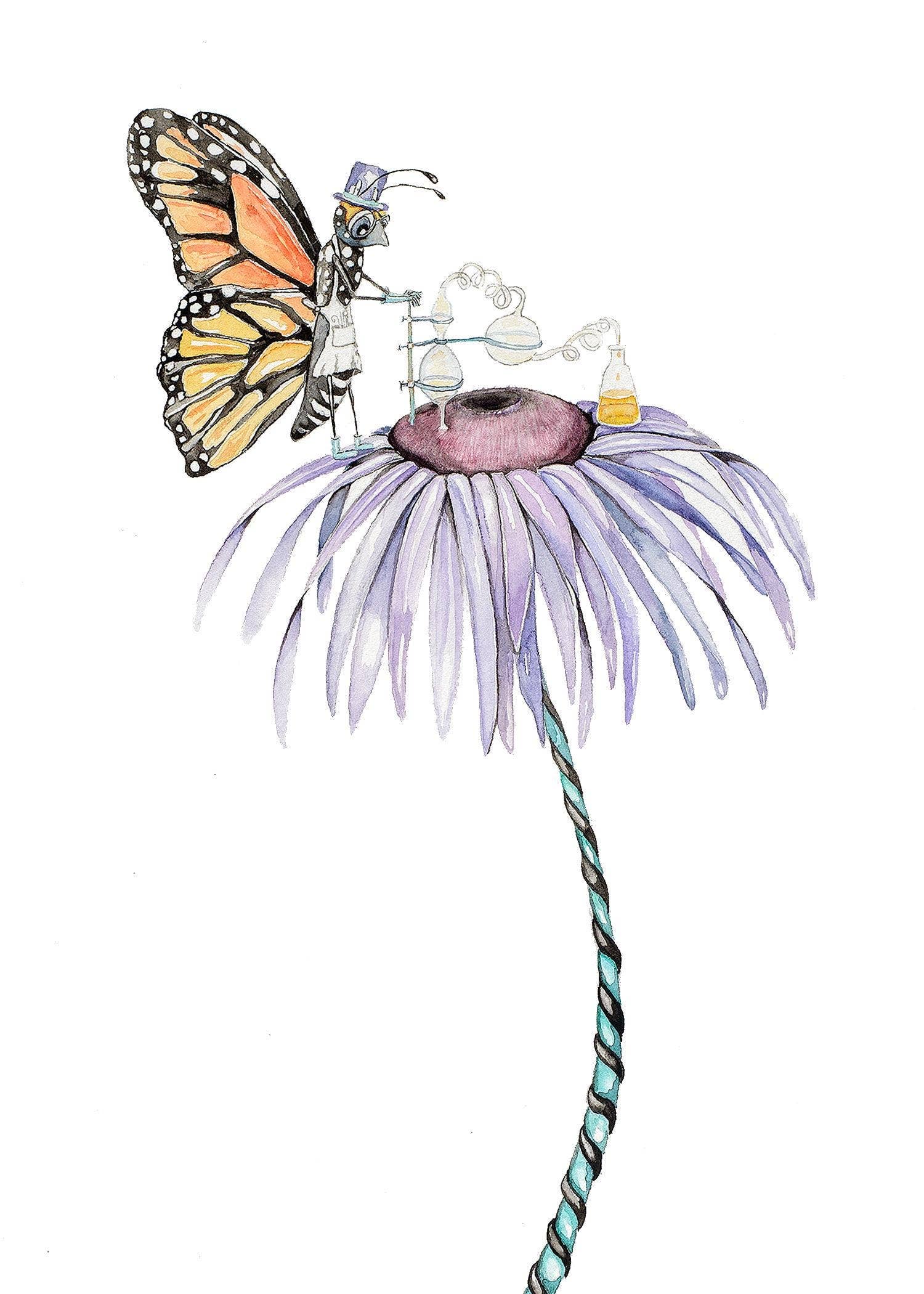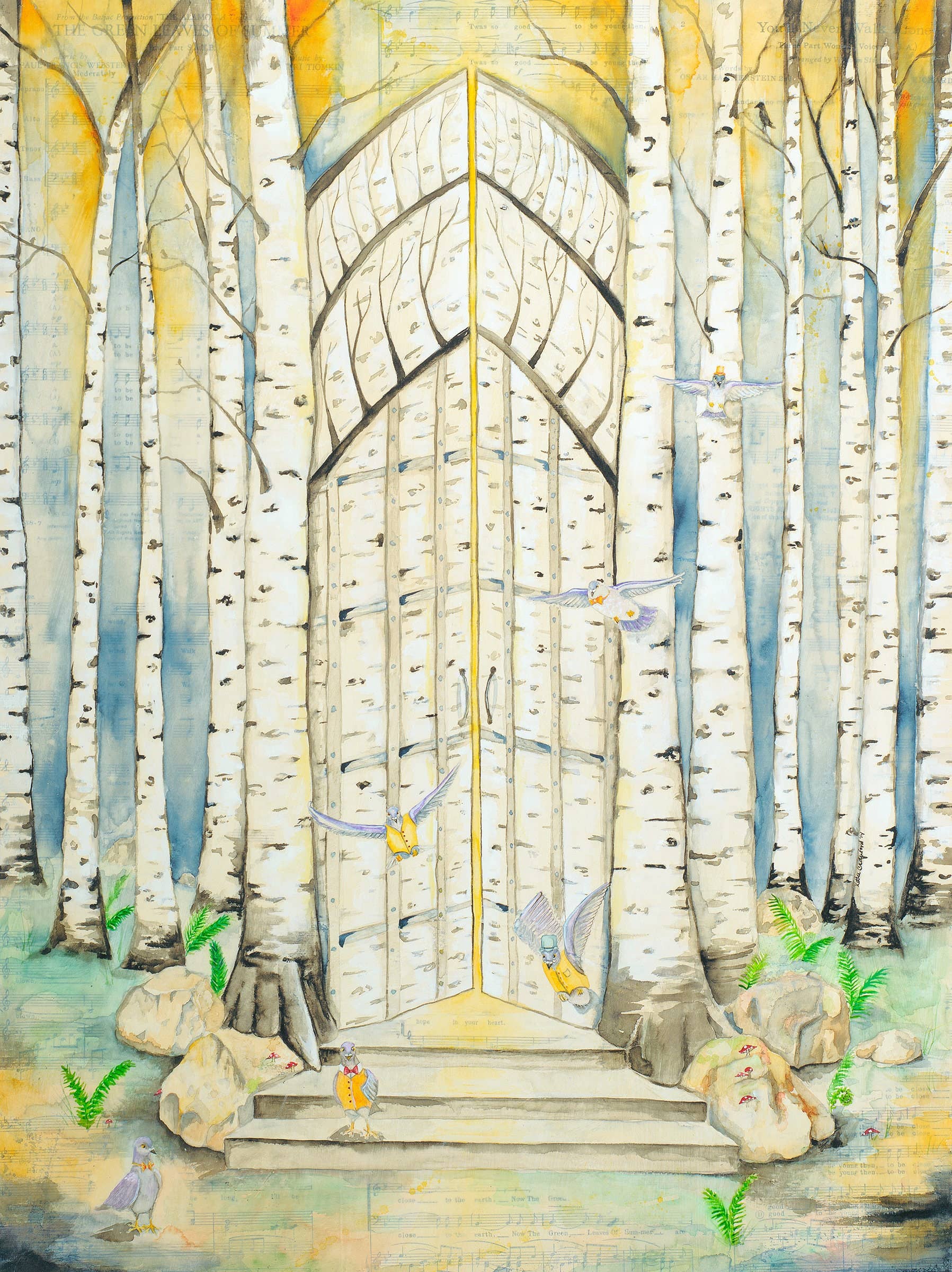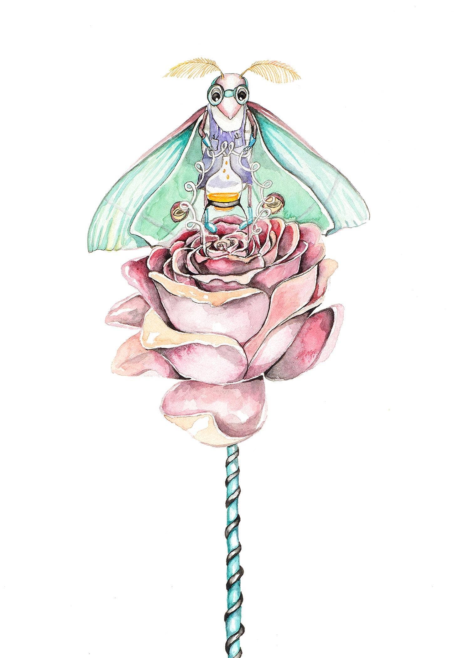 J'adore créer des œuvres où notre enfant intérieur et notre moi adulte peuvent se rencontrer. Mon plan astucieux est d'utiliser la fantaisie pour raconter juste assez d'une histoire pour que le spectateur soit attiré : ... puis commence à remplir le mystère avec ses propres souvenirs. J'ai deux styles principaux entre lesquels j'ai tendance à alterner. L'aquarelle pure et l'aquarelle en techniques mixtes. Avec l'aquarelle pure, il y a un croquis au crayon détaillé, puis l'aquarelle. Ce style est très planifié, contrôlé et technique. Ma technique d'aquarelle en techniques mixtes est plus expérimentale et abstraite. Je crée d'abord le fond, généralement sans idée préconçue de ce à quoi il va ressembler ou de l'histoire qu'il va raconter. Je déplace la peinture et vois ce qui se passe ! Je trouve que passer de l'une à l'autre de ces deux techniques opposées prévient l'épuisement.