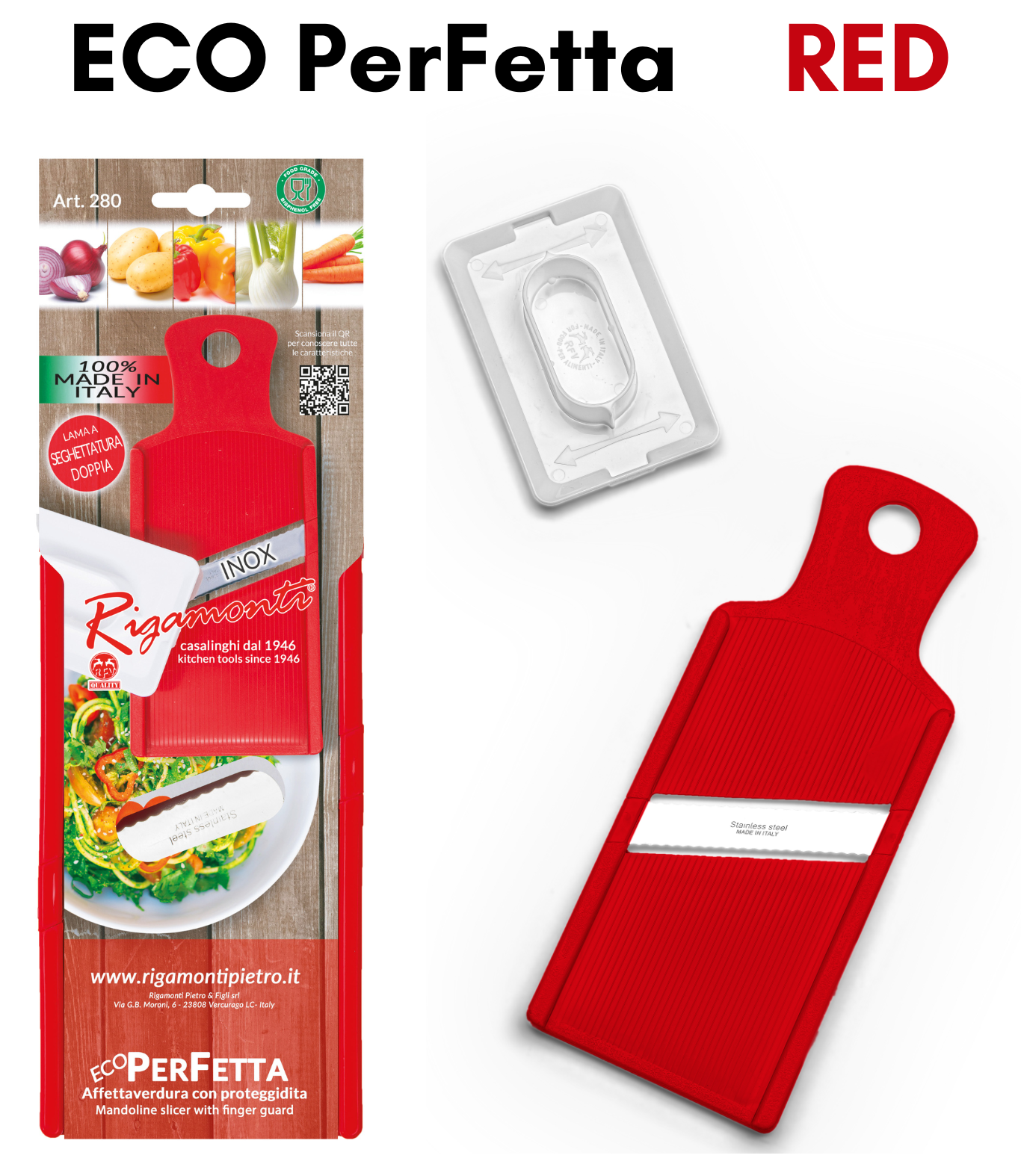 Une vaste expérience et une large gamme caractérisent le monde de Rigamonti Pietro & Figli srl. Une entreprise dynamique basée à Lecco, qui conçoit et fabrique des articles de cuisine manuels depuis 1946. La gamme Rigamonti est entièrement fabriquée en Italie. Elle est largement distribuée en Italie et exportée dans le monde entier, de l'Europe à l'Amérique du Nord et du Sud, de la Chine au Japon et à la Malaisie, de l'Égypte aux pays du Golfe. Le vaste catalogue comprend des presses à tomates, des râpes grandes et petites, des hachoirs à viande, des déchiqueteuses, des trancheuses mandoline, des presse-agrumes, des coupe-frites, des hachoirs, des trancheuses, des entonnoirs, des éplucheurs de légumes, des ouvre-boîtes, des aiguiseurs de couteaux, des broyeurs de glace, des bouchonneuses, des capsuleuses et bien plus encore. Cette production est appréciée dans le monde entier pour sa fonctionnalité et pour la qualité des matériaux utilisés. Résultat d'une mise à jour et d'un perfectionnement constants et méticuleux, les ustensiles de cuisine Rigamonti subissent des tests réguliers et stricts pour vérifier leur fiabilité et leur efficacité.