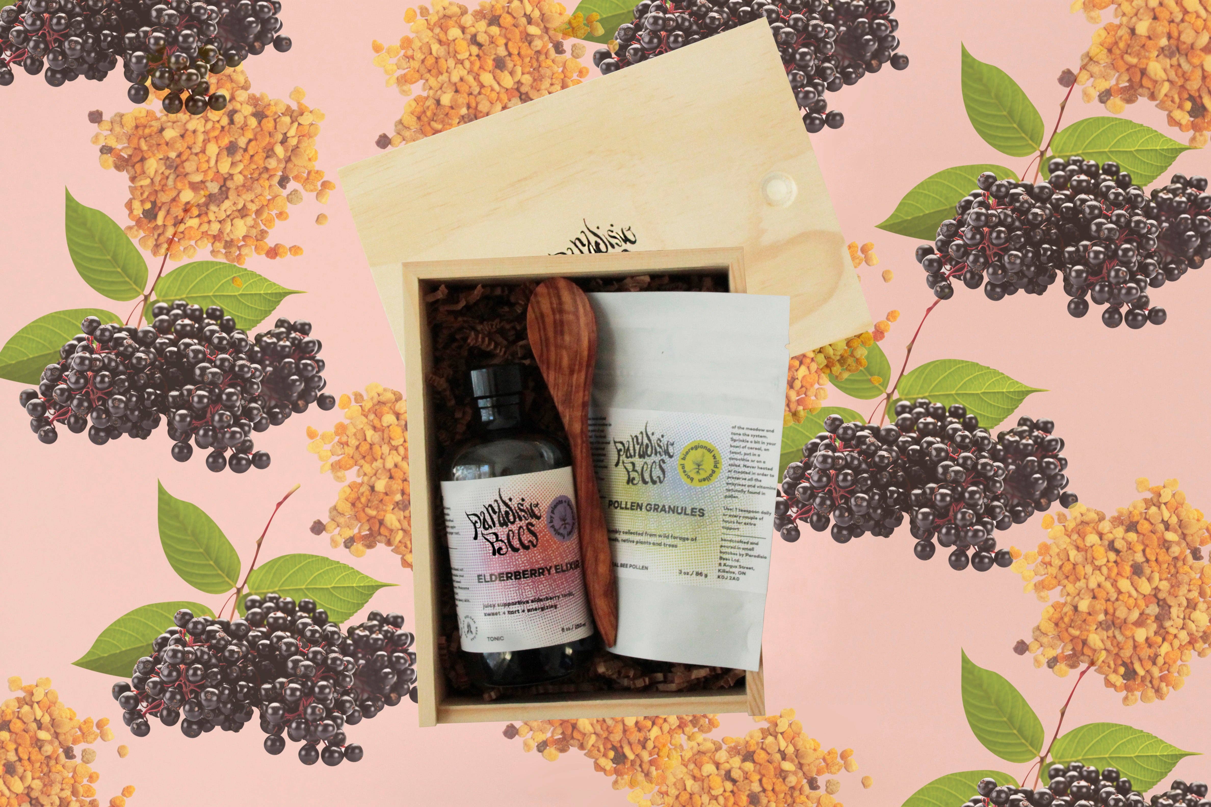 Paradisio Bees fabrique des élixirs rajeunissants conçus pour nourrir à la fois votre vitalité intérieure et votre éclat extérieur, en exploitant le pouvoir des bienfaits des plantes et du miel boréal sauvage immaculé. Inspiré par la joie abondante de la biorégion boréale du Canada, chaque produit est savamment mélangé à des ingrédients naturels de haute performance. Fabriqués à la main en petits lots dans notre atelier situé juste au sud-est du magnifique parc Algonquin, nous privilégions les ingrédients biologiques, fabriqués de manière responsable dans la nature et d'origine artisanale. Entrez dans des prairies baignées de soleil, dégustez de délicieux élixirs aussi bons pour la santé que délicieux, et profitez d'une peau rosée et éclatante. Il est encouragé de gambader.