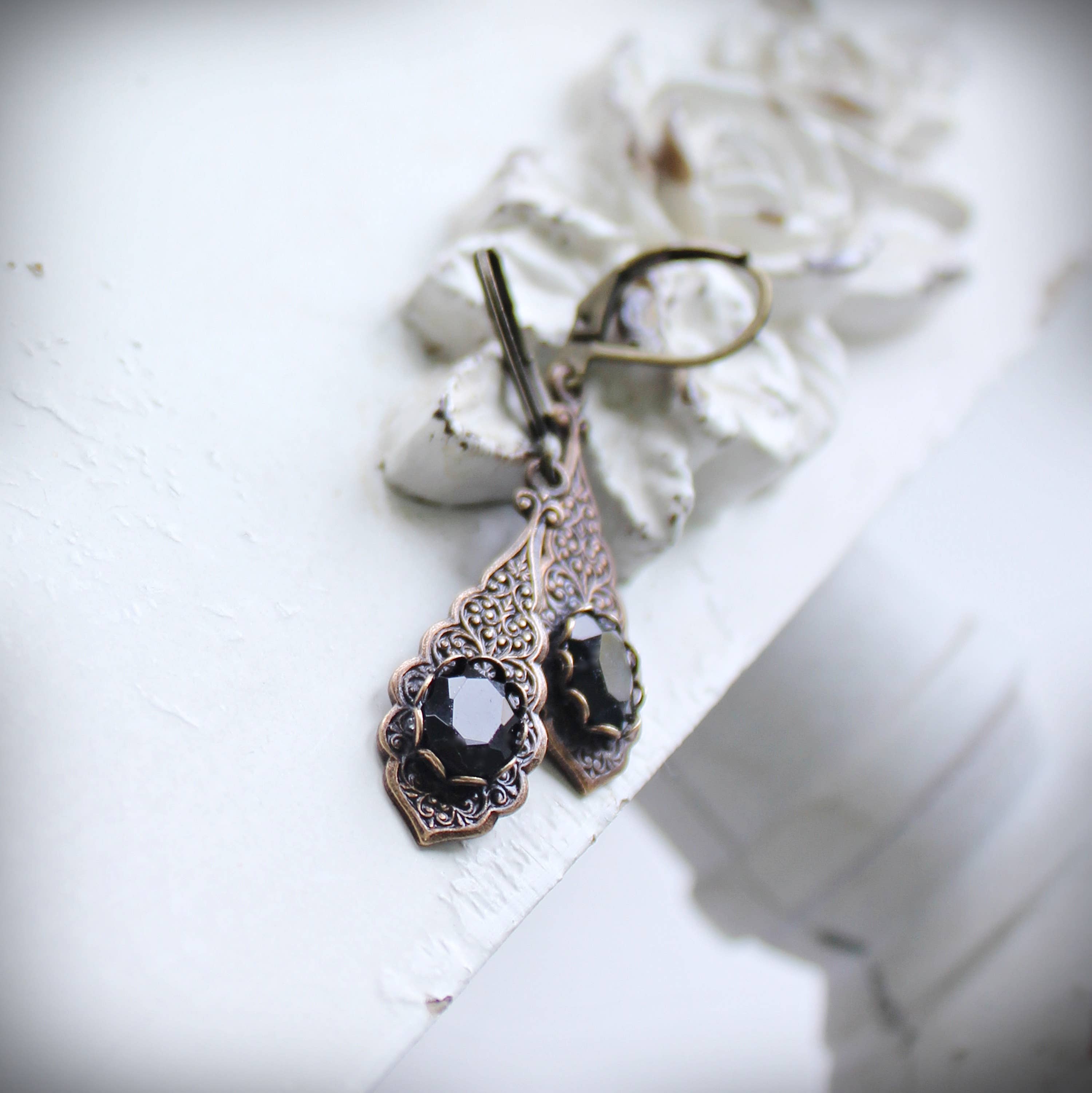Pour les moments qui vous sont proches de votre cœur... Avec une grande appréciation des détails du XIXe siècle, j'ai commencé à concevoir des bijoux de style vintage en 1991, en m'inspirant du tournant du siècle. Bien que les dessins ne soient pas des reproductions exactes de pièces originales, bon nombre de ces dessins suivent de près celui de l'époque. J'apprécie une nouvelle approche de la création d'une collection qui capture à la fois le luxe de l'époque et les influences de la mode d'aujourd'hui. La collection va du traditionnel au millésime moderne, avec toujours une touche d'antan. En utilisant des méthodes traditionnelles utilisées pour la fabrication de bijoux fantaisie de la fin des années 1800 au début des années 1900, chaque dessin de la collection Circa 1890 est soudé à la main à l'aide de composants en laiton frappés par matrice fabriqués aux États-Unis. Les composants en laiton sont en grande partie des conceptions de l'époque qui sont en production depuis plus de 100 ans et sont encore en cours de production aujourd'hui.