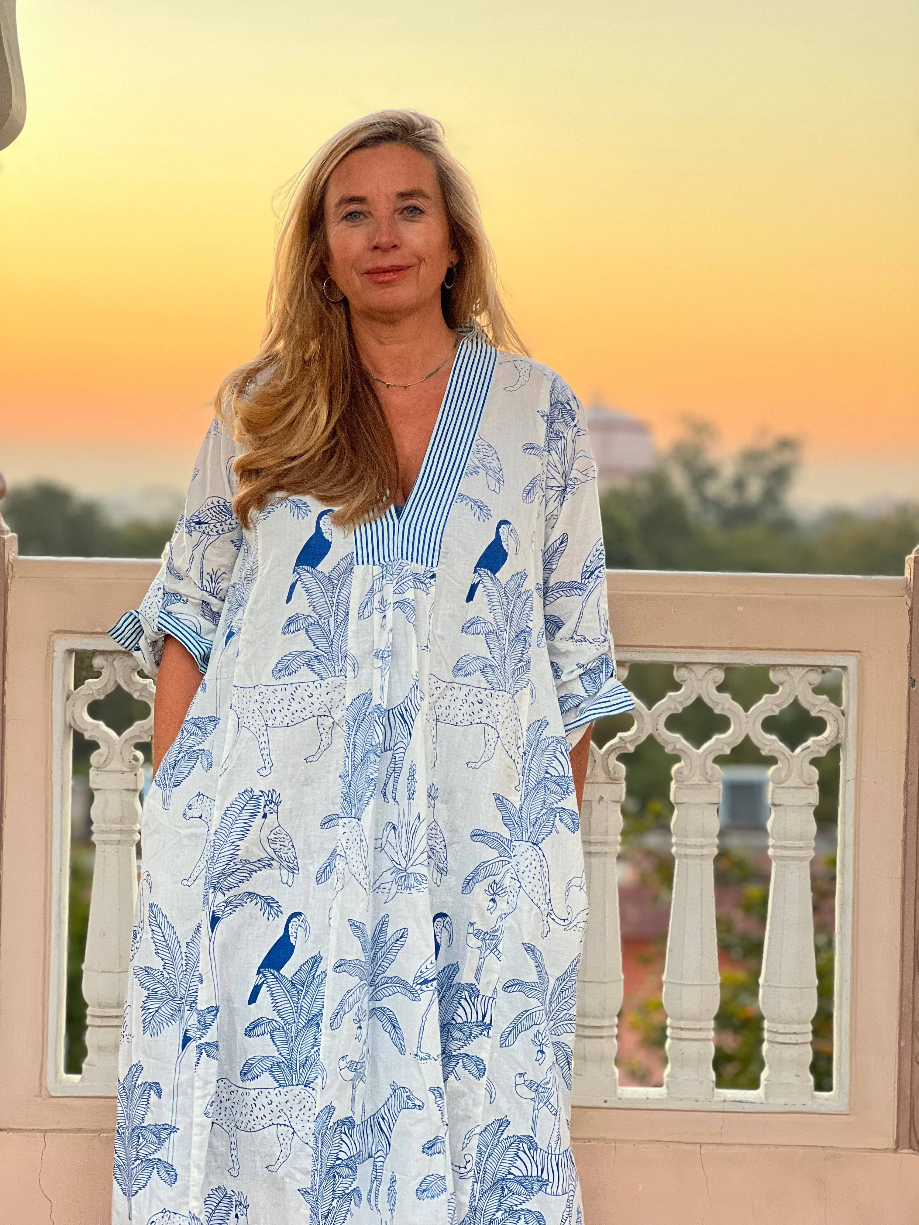 Aurobelle Ibiza, née sur les côtes ensoleillées des îles Baléares, a travaillé pendant de nombreuses années avec des artisans indiens pour tisser une tapisserie de luxe bohème et de style décontracté. Avec des racines profondément ancrées dans la culture dynamique de l'Inde et les paysages à couper le souffle d'Ibiza, l'histoire de notre marque est une célébration de l'envie de voyager, de la créativité et de l'élégance intemporelle. Imaginez un ciel bleu azur, des plages de sable et le rythme de la vie nocturne d'Ibiza : c'est l'essence même d'Aurobelle. Fondée par Jane Natascha Nake, une visionnaire passionnée qui est tombée amoureuse de l'attrait magnétique de l'île, notre voyage a débuté en 2003 avec le simple désir de capturer l'essence d'Ibiza et de la partager avec le monde entier. Au cœur d'Aurobelle Ibiza se trouve un engagement en faveur de l'artisanat et des pratiques durables. Chaque pièce est méticuleusement fabriquée à la main par des artisans qualifiés, en utilisant des matériaux issus de sources éthiques et des techniques traditionnelles telles que l'impression au bloc à la main et la broderie à la main chikan transmises de génération en génération.