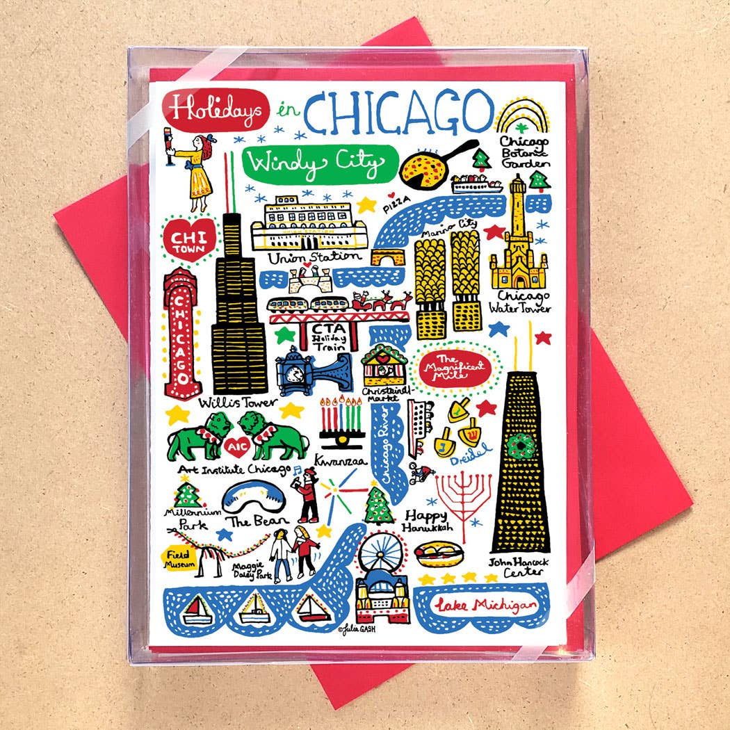 si vous avez déjà monté les trains de la CTA, cette carte peut sembler familier. nos lignes de train de Chicago et la signalisation ont de belles couleurs audacieuses, une police helvetica familière & mignonne, petites flèches directionnelles. cette carte est inspirée par ma douce maison chicago ! paquet/6 A2 5,5 po x 4,25 po 2 couleurs imprimées blanc vif couverture stock enveloppe bleu vif vierge à l'intérieur
