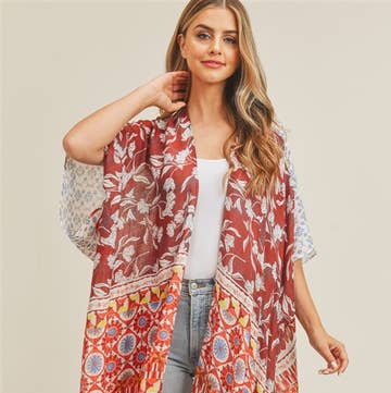Kimono Gratitude Imprimé Mixte - Sari recyclé en vente B2B