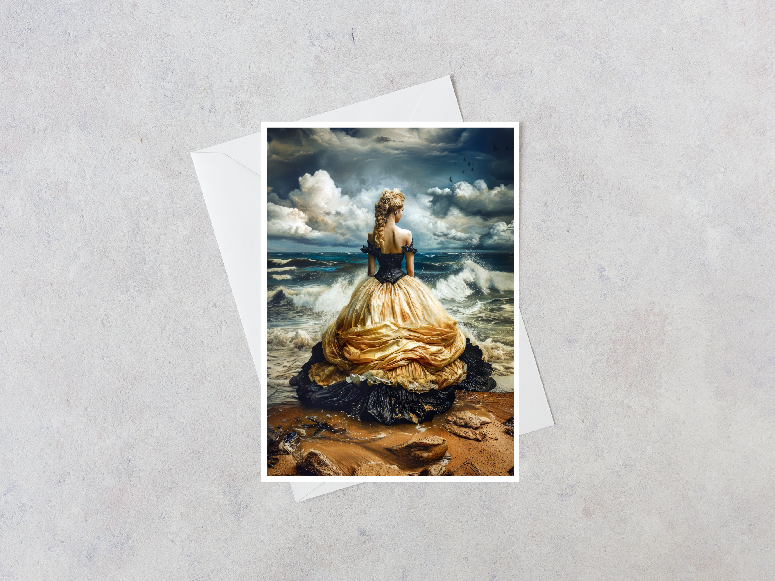 Carte A2 (4,25"x5.5" pliée), Intérieur vierge, Imprimé au Canada sur papier cartonné recyclé de 100lb, Emballé individuellement dans une pochette transparente pour violoncelle avec enveloppe blanche assortie, Livré dans un envoi plat rigide.