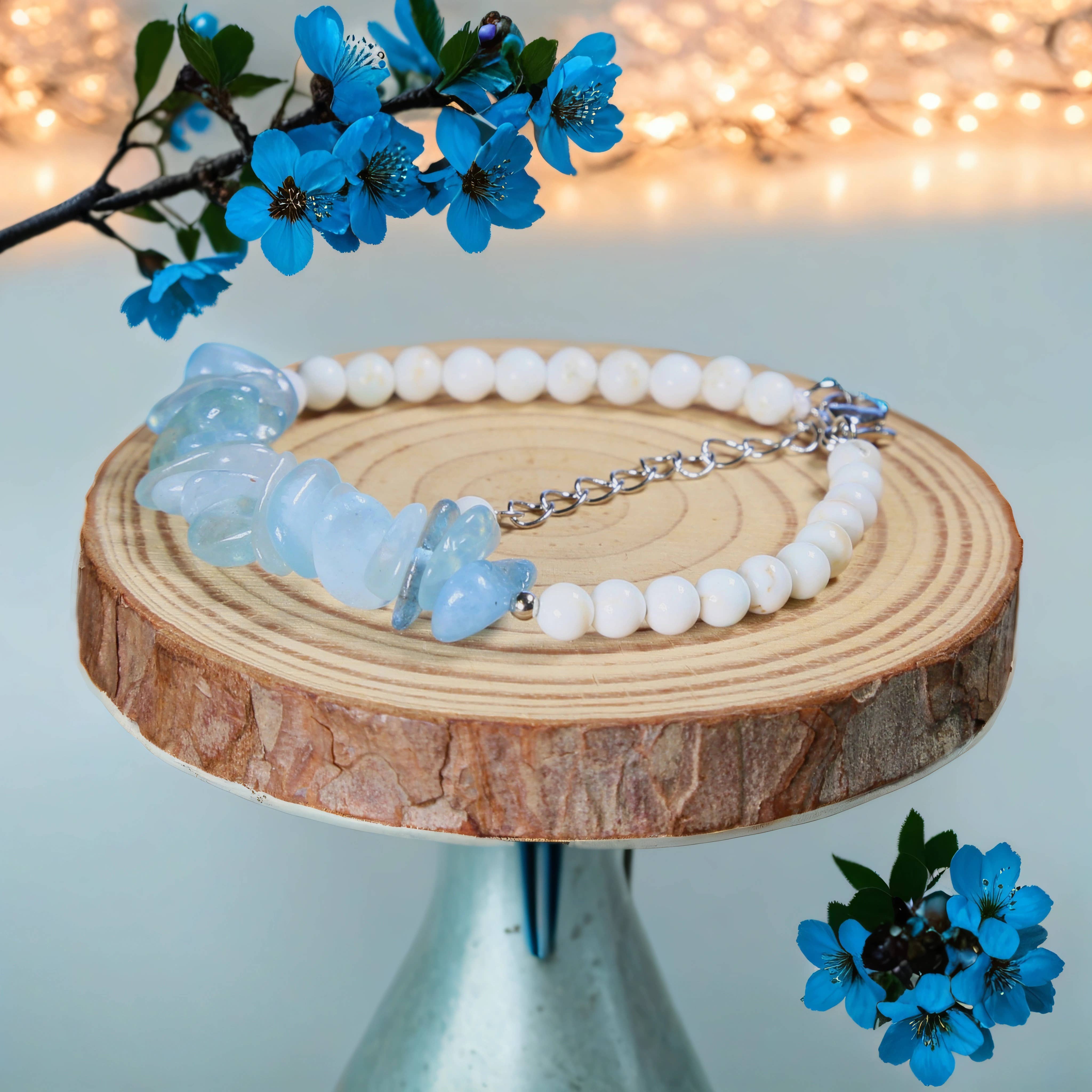 Menthe - Bracelet en pierre de guérison opale blanche avec impression de pattes opalite en vente B2B