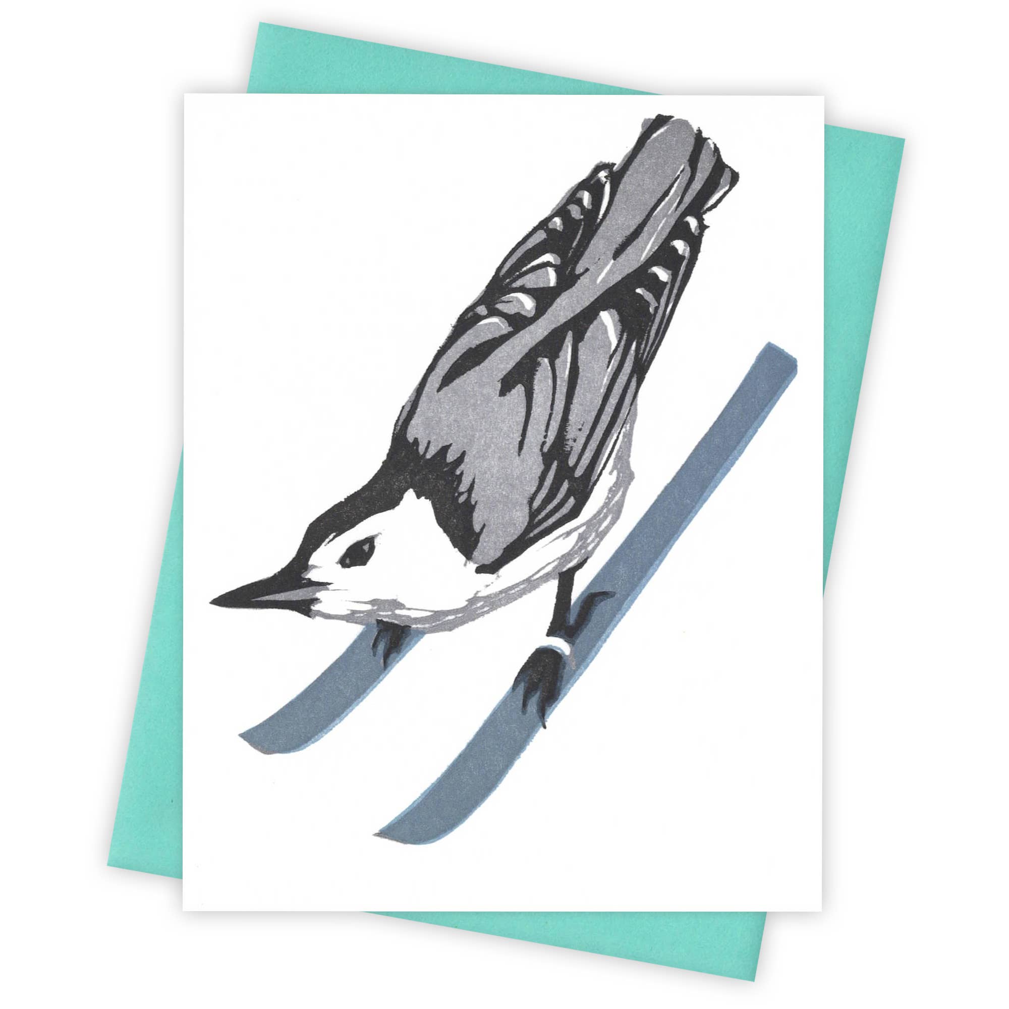 Carte pliée originale imprimée bloc sur papier 100 % coton avec une grackle gravée à la main, un parent et un enfant gravé à la main, prêt pour une balade en traîneau sauvage. Carte recto : 4.25" x 5.5", intérieur : vierge, comprend une enveloppe A2 de French Paper Company. Nous emballons chaque carte dans une pochette transparente avec une étiquette sur le bas du dos.
