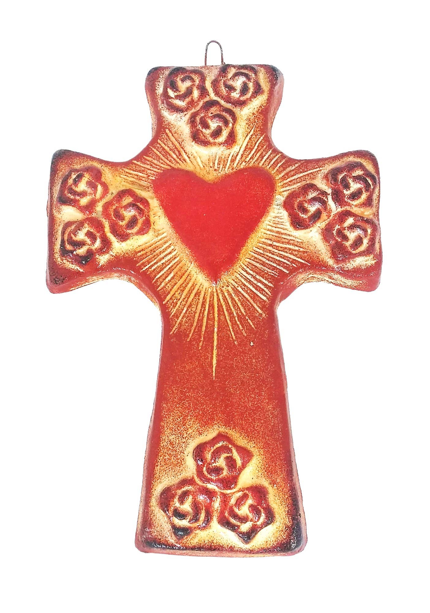 Ornement classique en forme de cœur rouge en étain dans la main en vente B2B