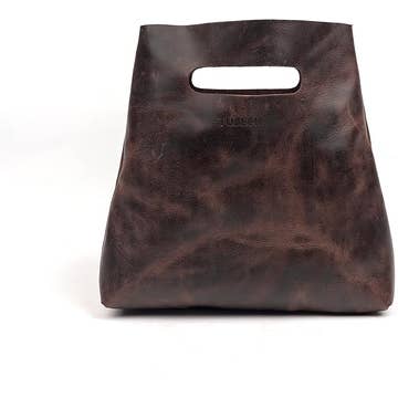 Sac cabas en cuir marron Matisse. Rouille et poils noirs sur la poche avant en peau. Poche extérieure pour téléphone portable sur le panneau arrière. Dimensions moyennes du sac fourre-tout à la hanche 16" x 5.25" x 12" Longues bretelles — 36" Grande poche extérieure à l'avant — 12" x 11.5". Poche extérieure arrière pour téléphone portable — 5,25" x 6". Fermoir aimanté. Poche intérieure pour carte de crédit ou carte d'identité. Poche intérieure zippée. Poches intérieures coulissantes. Pieds de repos en nickel argenté. Le poids moyen est de 1,5 lbs.