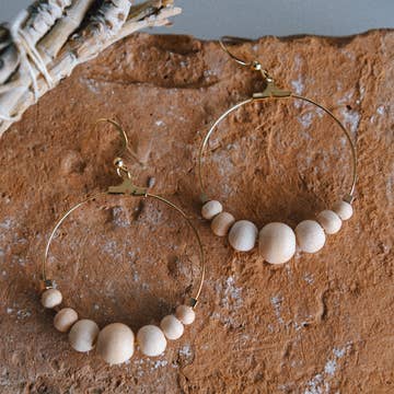 Fabriqué par des femmes indonésiennes perles vieilles boucles d'oreilles créoles faciles. Perles de verre.