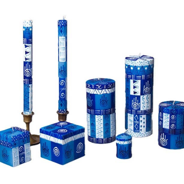 Le pack de 4 bougies Hamsa Shabbat intègre le design protecteur de la paume de Hamsa ! * Coulées et peintes à la main avec amour en Afrique du Sud. * Fabriquées principalement par des mères célibataires de la communauté rurale locale. * En moyenne, les artisans soutiennent une famille élargie de 12 à 15 personnes. DESCRIPTION DU PRODUIT : * Cône de 4,75" / Temps de combustion de 4 heures * Cire de paraffine naturelle de la plus haute qualité avec une mèche en coton à 100 % * Non parfumées, sans fumée et exemptes de toxines ajoutées * Bougies de Shabbat emballées en pack de 4 et attachées avec une carte d'histoire. ENTRETIEN DES BOUGIES : * Temps de combustion initial : 1 heure pour chaque pouce de diamètre * Les mèches doivent toujours être coupées à ¼” avant d'être allumées * Évitez les courants d'air – ils provoquent des gouttes ! * Assurez-vous que les bougies sont éteintes avant de quitter la pièce.