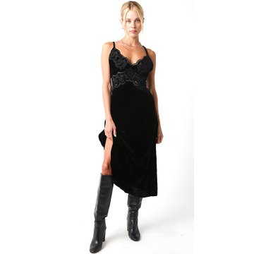 Robe corset désossée en acier velours noir à tiroir supérieur en vente B2B
