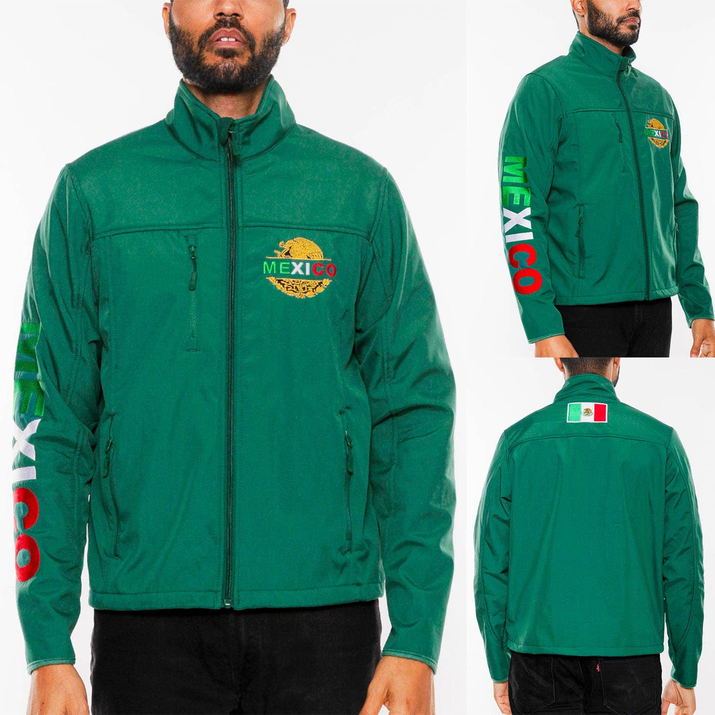 Détails du produit : - Tissu softshell thermocollé avec doublure en polaire thermocollée - 96 % polyester, 4 % spandex - Doublure polaire 100 % polyester - Cordon de taille ajustable - Broderie du logo « MEXICO » sur le côté gauche de la poitrine et le long de la manche droite - Deux poches basses avec fermeture zip - Fermeture frontale zippée - Col montant - Softshell de haute qualité avec polaire contrastée - Poche poitrine zippée à gauche