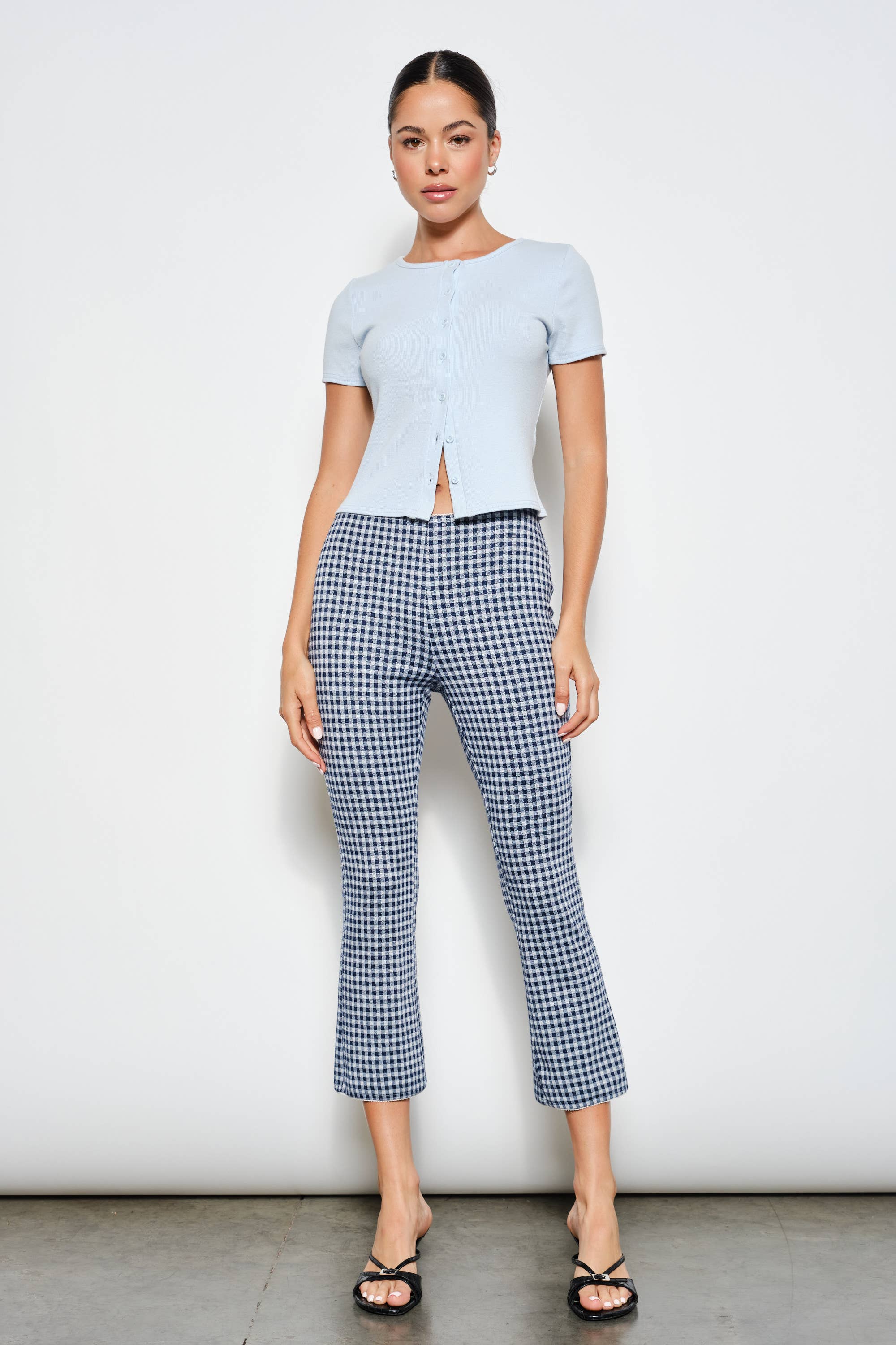Fermeture à crochet et fermeture à glissière sur le devant, détail à nouer sur le devant et taille haute en taille courte Plaid Hounds Tooth Composition : 85 % polyester, 12 % viscose, 3 % élasthanne Importé Top assorti
