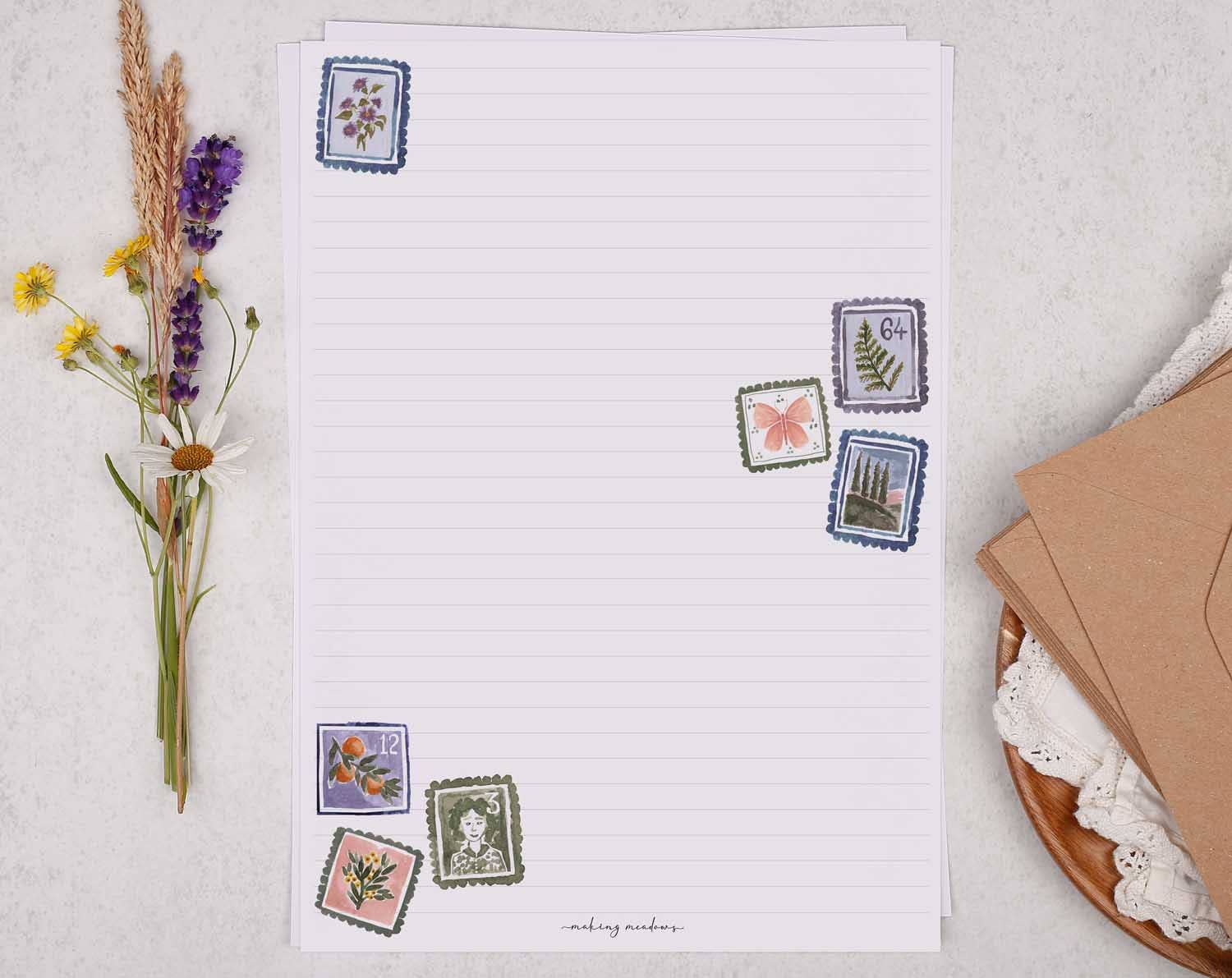 32 feuilles d'oiseaux de jardin, papier à lettres A5 ligné. Avec 4 motifs différents dans chaque coffret cadeau, vous pouvez les mélanger et les assortir pour créer la lettre parfaite sur plusieurs pages. Parfait pour écrire à des correspondants ou pour offrir à un amateur de papeterie. Chaque ensemble de papier à lettres est accompagné de 16 enveloppes. Ces coffrets cadeaux en papier à lettres créent une belle première impression pour le client grâce à la façon dont les motifs sont présentés dans les coffrets cadeaux haut de gamme. Ils ont certainement le facteur wow ! Non seulement elles sont belles à regarder, mais le papier lisse 100 g/m² est certifié FSC et les enveloppes sont fabriquées au Royaume-Uni. Ils sont également essayés et testés avec des stylos de calligraphie. Papier à lettres A5 : 21 cm x 14,8 cm (100 g/m²) Enveloppes C6 : 16 cm x 11,5 cm (100 g/m²). Papier à lettres | Coffret cadeau en papier à lettres A5 non ligné avec oiseaux