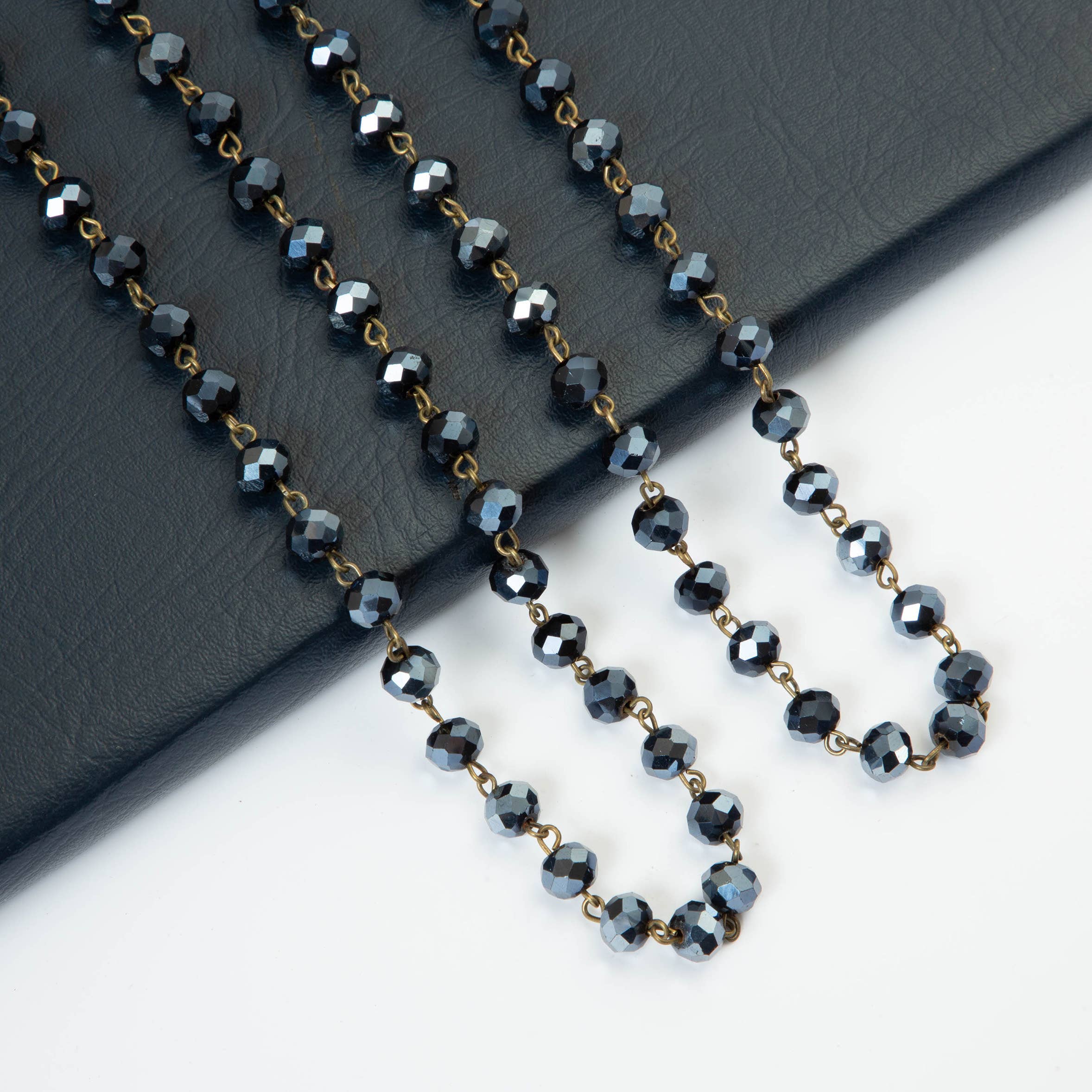 Description : Ce collier est fabriqué avec les couleurs noires merveilleusement facettées et de haute qualité des CRISTAUX. Il y a des nœuds entre chaque cristal pour plus de sécurité. Tous noués à la main. Les nœuds ne sont pas trop serrés comme certains autres, de sorte que le collier peut tomber magnifiquement lorsqu'il est porté. Le prix d'inscription est pour 1 brin Matériau : cristal Forme : Rondelle, 5 x 8 mm Couleur : perles noires, fil marron foncé Style : style pull over sans fermoir Longueur : 60 « ou 36 » à votre choix Dimensions : nombre de perles/brins : 5 x 8 mm - environ 201 pièces/brins — Utilisation : Prêt à porter ! Style enfilable sans fermoir. Collier en cristal noué à la main de 8 mm, 60 pouces ou 36 pouces de long, collier extra long, parfait à porter empilé, ajoutez un pendentif.