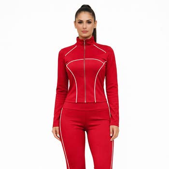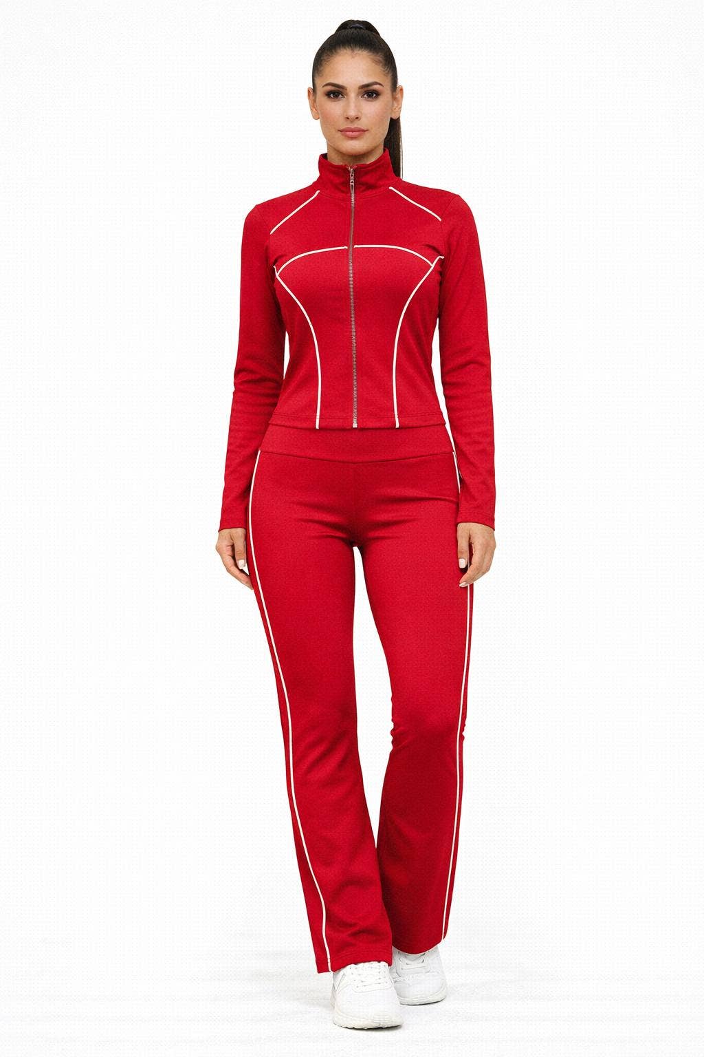 Ensemble sexy 2 pièces, fermeture éclair à l'avant, poignets et ourlet côtelés, pantalon à taille élastique avec poche latérale S : Buste du haut 45,5, longueur 25,5, longueur du pantalon 39, taille 25, hanches 39 M : Buste du haut 47, longueur 26, longueur du pantalon 39,7, taille 27, hanches 41 L : Buste du haut 49,5, longueur 26,3, longueur du pantalon 40, taille 29, hanches 43 XL : Buste du haut 52, longueur 26,7, longueur du pantalon 40,5, taille 31, hanches 45,5 2XL : Buste du haut 55, longueur 27, longueur du pantalon 41, taille 33, hanches 48