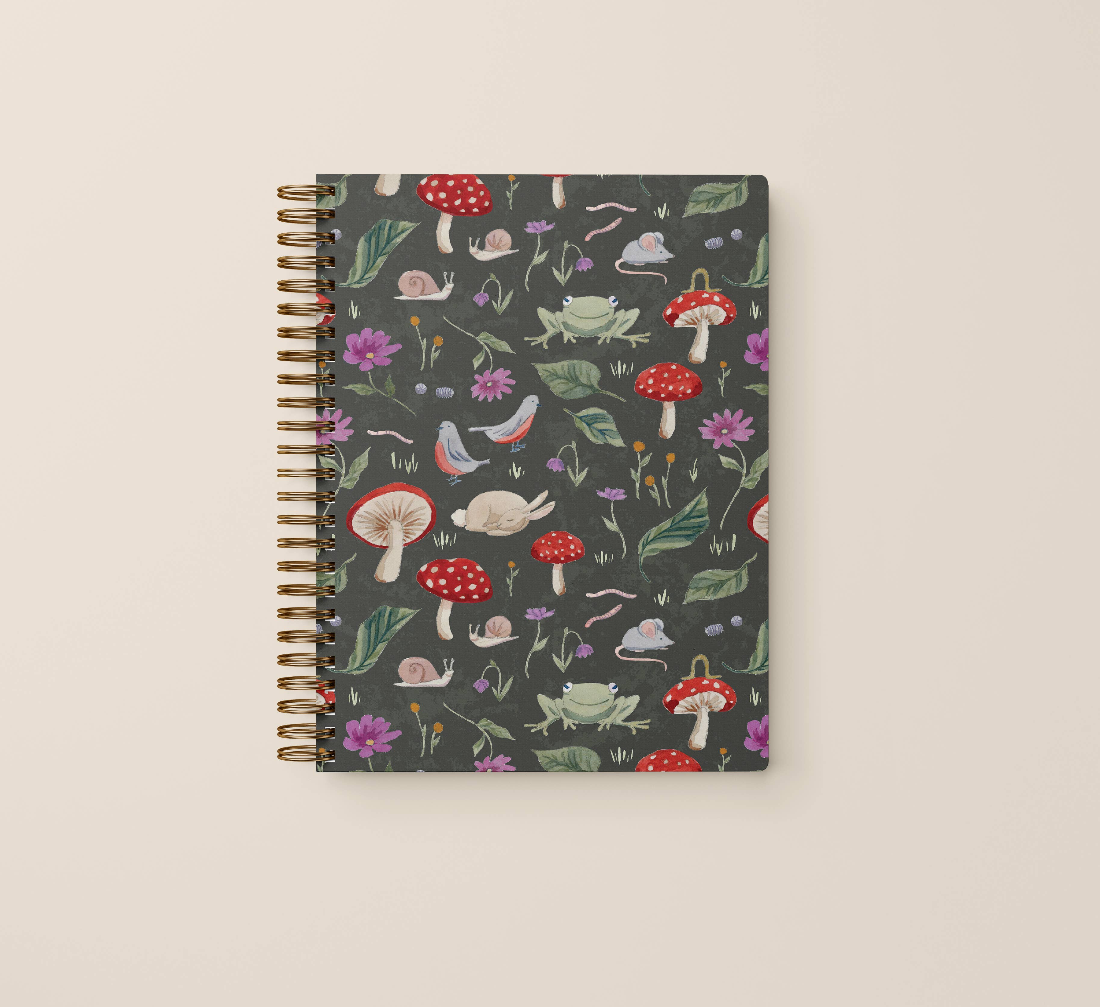 Des champignons, des feuilles et des fougères ornent les couvertures de ce charmant journal au petit format. Le design est embossé et agrémenté de feuille d'or. Les champignons « ressortent » avec des reflets brillants sur un fond noir mat. À l'intérieur, 160 pages d'écriture nettes offrent amplement d'espace pour la réflexion personnelle, le dessin ou la notation de citations ou de poèmes préférés. Le papier lisse de 120 g/m² accueille magnifiquement le stylo ou le crayon. Le papier est sans acide et de qualité archivistique. Des lignes gris clair guident subtilement votre écriture. Glissez des notes, des souvenirs et plus encore dans la poche à l'intérieur de la couverture arrière. La fermeture élastique assortie maintient le tout ensemble. Les pages de garde intérieures complémentaires rehaussent le design. Reliure rigide durable. Taille populaire au petit format, 5'' de large x 7'' de haut, se glisse facilement dans la plupart des sacs et sacs à dos.