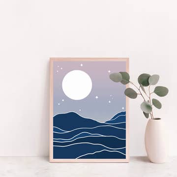 Par une nuit fraîche, installez-vous sous une couverture douce et confoncez le ciel étoilé au-dessus d'un lac calme et tranquille. Il s'agit d'une impression numérique de haute qualité de mon illustration originale à l'encre dessinée à la main à laquelle j'ai ajouté de la couleur numériquement. J'imprime dans mon home studio sur des papiers Epson Fine Art 100% coton car ils sont magnifiquement texturés, ont un poids important et les surfaces blanches brillantes rendent les couleurs riches et vraies. J'utilise des encres pigmentées haute densité qui sont durables et très résistantes à la décoloration et aux rayures. Deux tailles disponibles pour s'adapter aux cadres de taille standard américaine 8 x 10 et 11 x 14, chacun avec une petite bordure blanche pour un encadrement facile. Signé, daté, puis emballé avec soin avec un support sans acide dans un sac de violoncelle d'archives et expédié dans une enveloppe rigide.