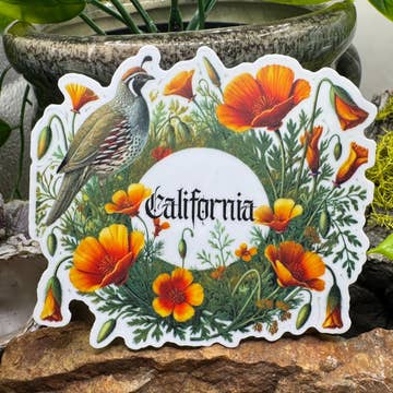 Autocollant de Caille de Californie Oiseau d'État Coquelicots Fleur Souvenir de Voyage en vente B2B
