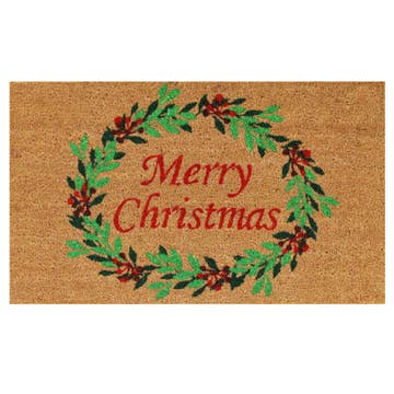 Paillasson Couronne de Noël Rouge/Vert/Rose 45x75 en vente B2B