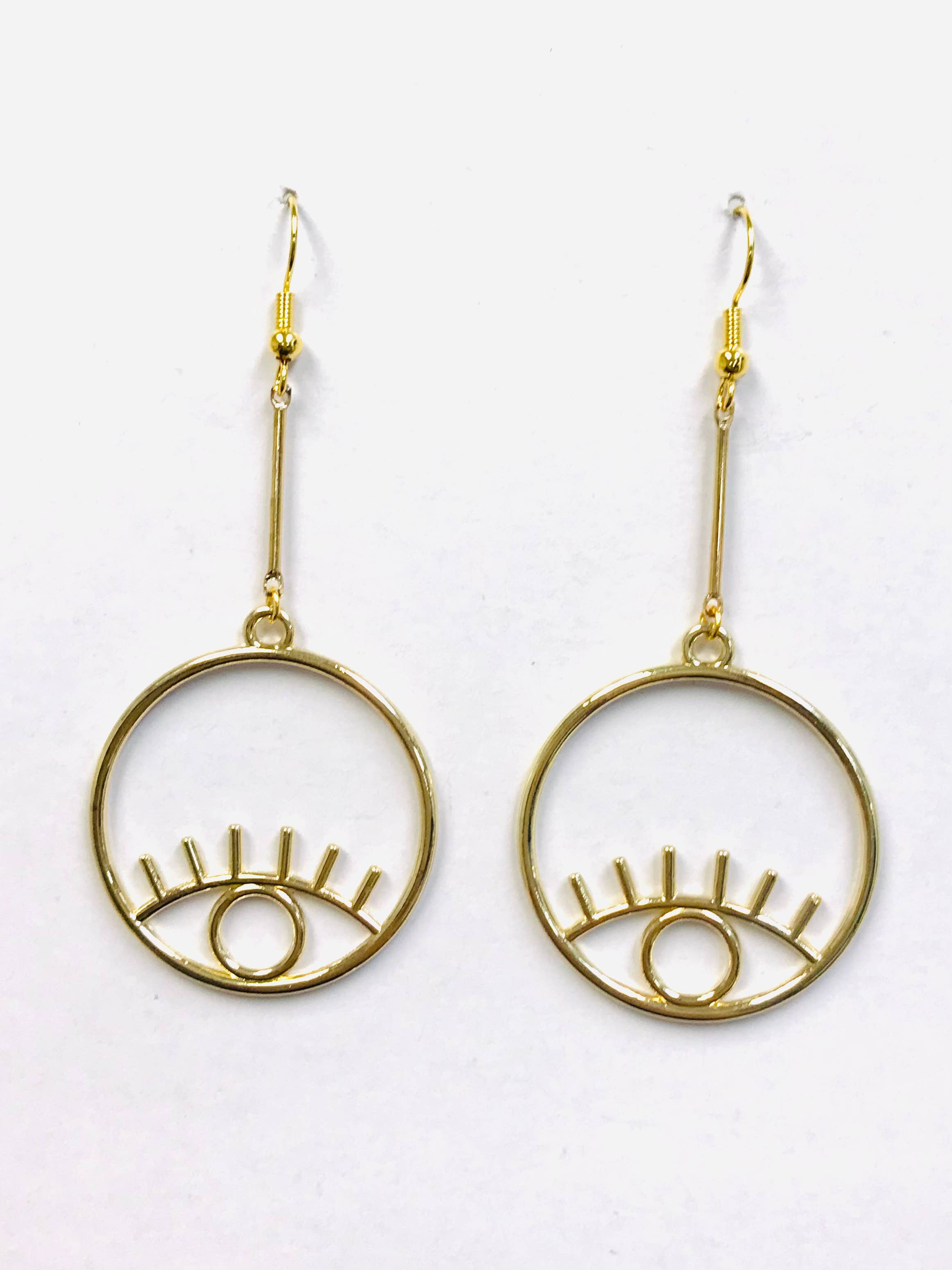 Les boucles d'oreilles dépareillées Future Vision sont ornées de perles en acrylique en forme d'œil de protection, d'une étoile en laiton, d'un signe de paix en laiton et de cercles en laiton vintage. Les boucles d'oreilles sont légères, ont des crochets auriculaires sans nickel et mesurent environ 3 pouces de long.