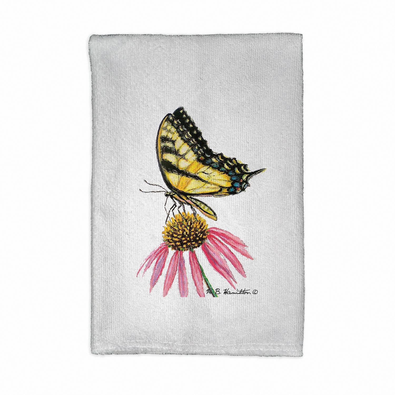 Art par Kenzie Kae Elston Un ménagerie colorée de papillons et de fleurs fait de ce torchon en coton un ajout lumineux à toute cuisine. Jetez ces torchons de cuisine usés et mettez la main sur ces torchons artistiques en coton débordant de couleurs. Que ce soit pour un usage quotidien ou une occasion spéciale, il y a un torchon en coton 100% pour tout le monde. Informations sur le produit * Art unique de notre communauté d'artistes mondiale * Torchon de 18" L x 28" H * 100% coton * Lavable en machine * Impression couvrant toute la surface * Boucle de marque pour suspendre * Art créé mondialement. Importé.