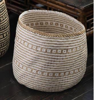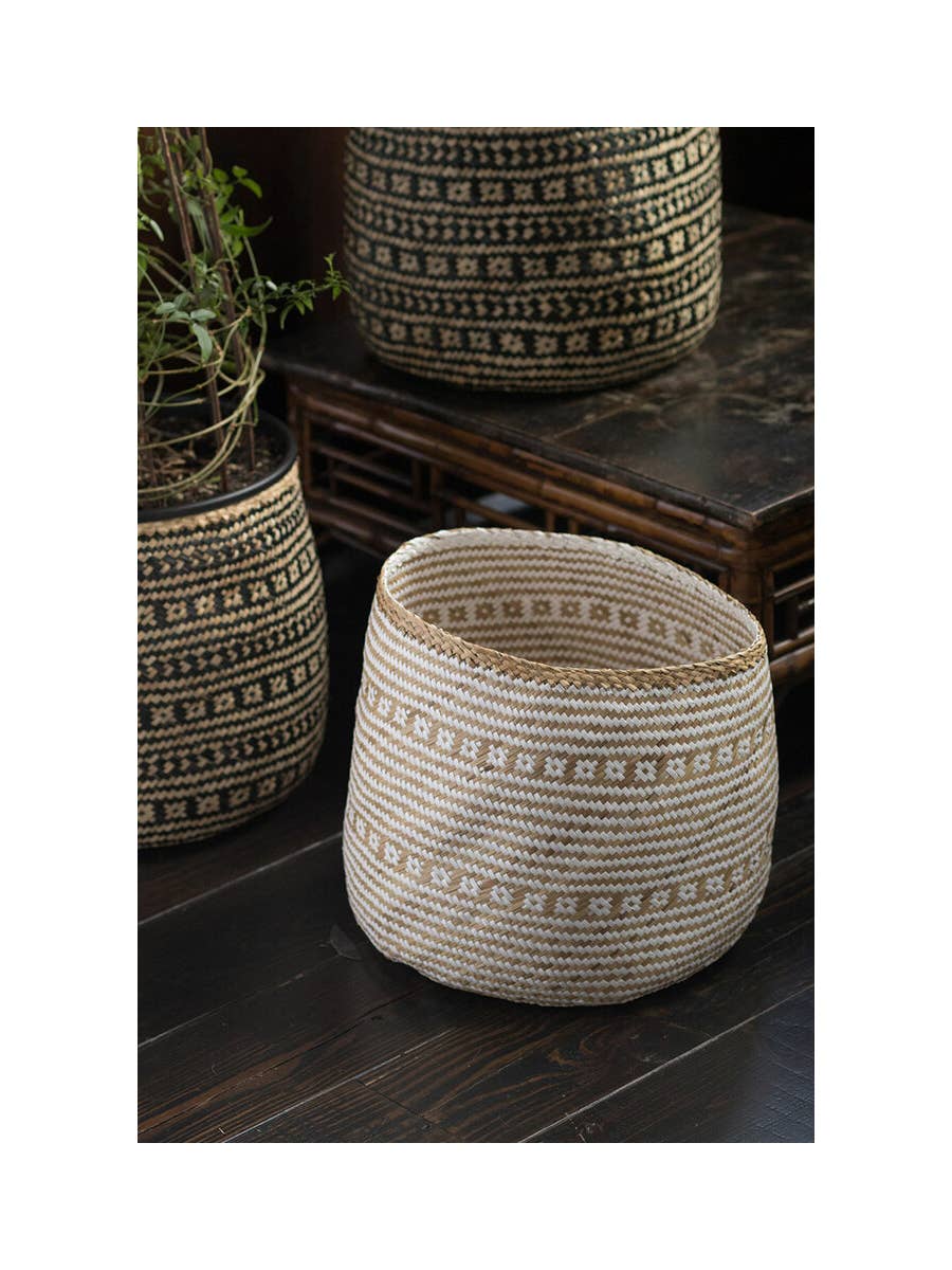 Ces magnifiques paniers marocains en laine ont été faits à la main par des artisans marocains utilisant de la laine entièrement naturelle et du palmier. Avec leurs motifs audacieux et colorés, ils représentent une pièce d’art fonctionnelle. Une solution de rangement compacte pour votre chambre de bébé, salle de bain, cuisine ou toute autre pièce nécessitant une touche de couleur, un ajout bohème et amusant. Traditionnellement utilisé par la tribu berbère pour conserver le pain dans les montagnes de l'Atlas marocain, ce panier en laine apportera une note unique à votre intérieur grâce à ses couleurs chatoyantes et ses motifs tribaux. Il peut aussi servir d’objet décoratif grâce à ses couleurs vives et son style ethnique. Caractéristiques : - Dimensions : environ 20-25 cm de hauteur avec couvercle - Matériaux : palmier et laine entièrement naturelle - Fait main - Importé du Maroc En raison de la fabrication artisanale, chaque pièce est une œuvre d’art unique avec de légères variations de couleur, texture et forme. La durabilité n’a jamais été aussi esthétique.