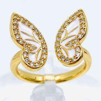Bague décontractée réglable Elegant Nature Mariposa pour femme Matériau : Laiton plaqué or véritable, ne ternit pas Taille Ajustable - Taille unique - US SIZE 6.5 Pour info, hypoallergénique Résistant au ternissement Sans nickel ni plomb