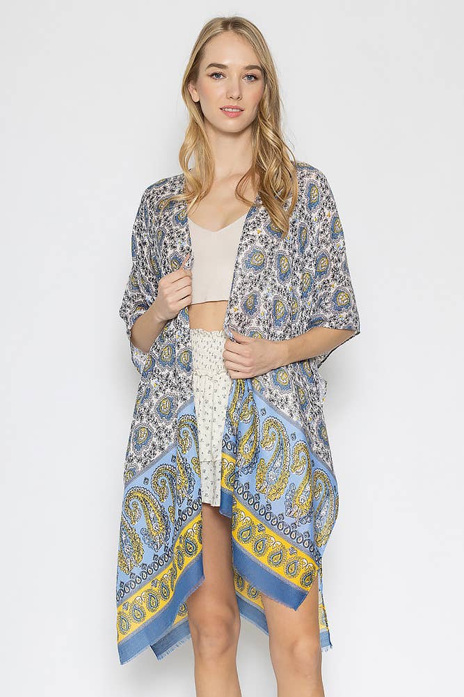 Kimono long imprimé tie-dye décoloré BJ664-W702