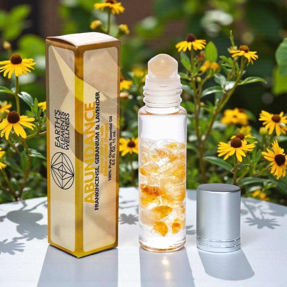 Bien-être Earths Elements - roll-ons en cristal d'huiles essentielles pour l'intuition. Mélange 100 % biologique de patchouli et lavande avec huile de jojoba, accompagné de cristaux de fluorite et d'une bille de rouleau assortie en fluorite. Commande minimale : 2. Appliquez le roll-on sur les points de pulsation, comme les poignets ou les tempes, ou respirez simplement le parfum pour un regain rapide d'énergie ou pour mieux vous concentrer sur des intentions positives. Ce mélange apaisant contient des huiles thérapeutiques et des pierres de fluorite pour favoriser la méditation, calmer l'esprit et encourager le travail intérieur. Il aide à se connecter à un état supérieur de conscience et de clarté. Sublimez votre offre en gros avec notre roll-on Intuition et invitez vos clients à mieux développer leur intuition à chaque application.
